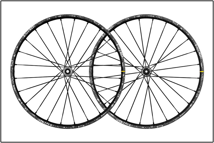 De wielset wordt gekenmerkt door glimmend gepolijste naven en zilverkleurige stickers op de velgen. Technisch gezien is het echter geen nieuwe wielset. Dat betekent dus nog altijd de bekende 28 mm hookless aluminium velg. In deze tijd misschien zelfs smal te noemen in dit segment. Niettemin zou de velg nog altijd perfect combineren met 2.5-2.6” brede banden. Mavic gebruikt hun ‘Fore’ technologie om geen gaten te hoeven boren in het velgbed. Deze techniek stond ruim 20 jaar geleden aan de wieg van Mavic’s UST (Universal System Tubeless). En nog steeds biedt het een voordeel omdat je géén velglint nodig hebt, aangezien het aluminium velgprofiel dus geheel luchtdicht is.
