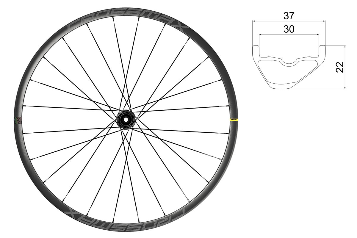 Bij de Crossmax XL serie is de R het topmodel. Ook hierbij is de velg asymmetrisch in doorsnede en meet 30 mm intern. Wat opvalt is dat ‘ie slechts 22 mm hoog is. “Wide 30 mm and low-profile rim for efficient climbing plus overall strength for technical terrain”, aldus Mavic. Ten opzichte van de SL R zijn er hier messing in plaats van aluminium spaaknippels toegepast voor meer robuustheid. Het resultaat is een wielset met een gewicht van 1610 gram. De prijs is gelijk aan die van de SL R, dus € 1.200.