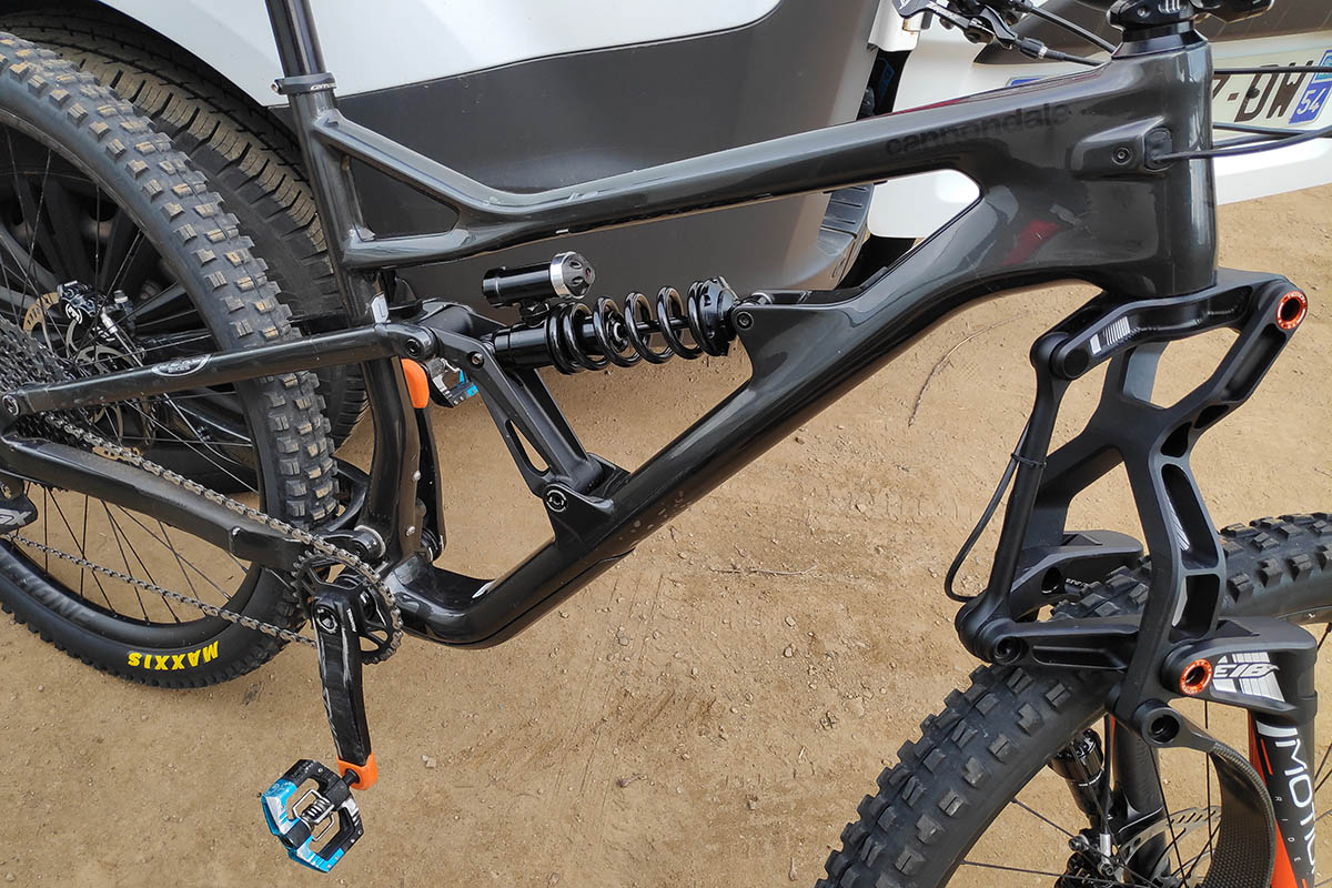 De demper in de Motion parallellogramvork heeft een thru shaft-constructie (ongeveer zoals Treks Reaktive-demper die ook heeft), maar of de Motion-achterdemper ook met deze technologie werkt is niet goed te zien.