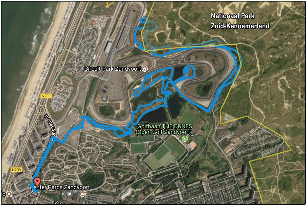 Ruim 15 jaar ligt er al een mountainbikeroute in de duinen bij Zandvoort. Wat ooit begon als een rondje dat door lokale cyclocrossers gebruikt werd, groeide onder impuls van lokale bikers langzaam uit tot een mountainbikeroute van zo’n 9 kilometer, slingerend door de duinen rondom het bekende Circuit Park Zandvoort. Zowel het Circuit als het mountainbikeparcours gaat grotendeels over grondgebied van de gemeente. De route bestaat uit een technische Zuidlus en een iets minder technische, maar glooiende Noordlus. Die noordelijke lus loopt deels door het Nationaal Park Zuid-Kennemerland dat beheert wordt door PWN.