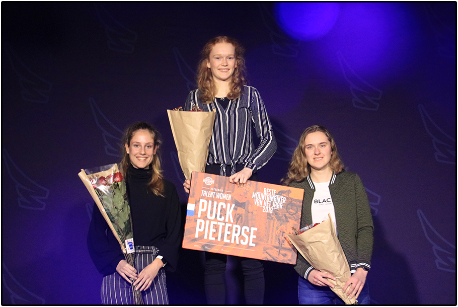 De aandacht ging niet alleen naar de elite-heren en elite-dames. Ook aanstormend talent wordt bij de MTB Awards in de schijnwerpers gezet. Bij de heren ging de prijs voor het beste talent naar Niek Hoornsman. Hij werd in juli Nederlands Kampioen bij de junioren, won het eindklassement van de 3-Nations Cup en werd 9e bij het EK en 23ste bij het WK. Puck Pieterse werd bekroond tot het damestalent van 2019. Ze werd Nederlands kampioen bij de junior-vrouwen en ook op international vlak liet ze zien dat ze ook erg goed op niveau presteert.
