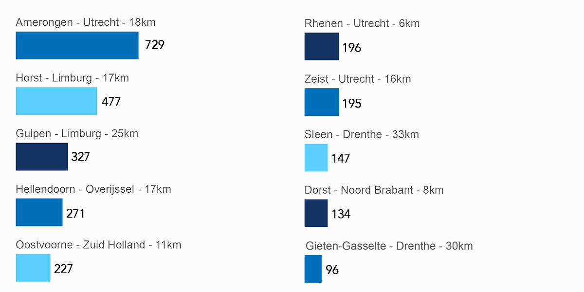 De aanmoedingsprijs gaat dit jaar naar de routebouwers van vereniging de Pedaleur. Dit dankzij hun tomeloze inzet en de vele activiteiten die rondom de route worden georganiseerd. De route over de heuvels in Montferland maakt al volop gebruik van het hoogteverschil, maar het gebied heeft grote potentie voor méér… Volgens de jury heeft de route met een aantal kleine aanpassingen of vernieuwde segmenten het in zich om mee te dingen naar een absolute topnotering als publiekslieveling.