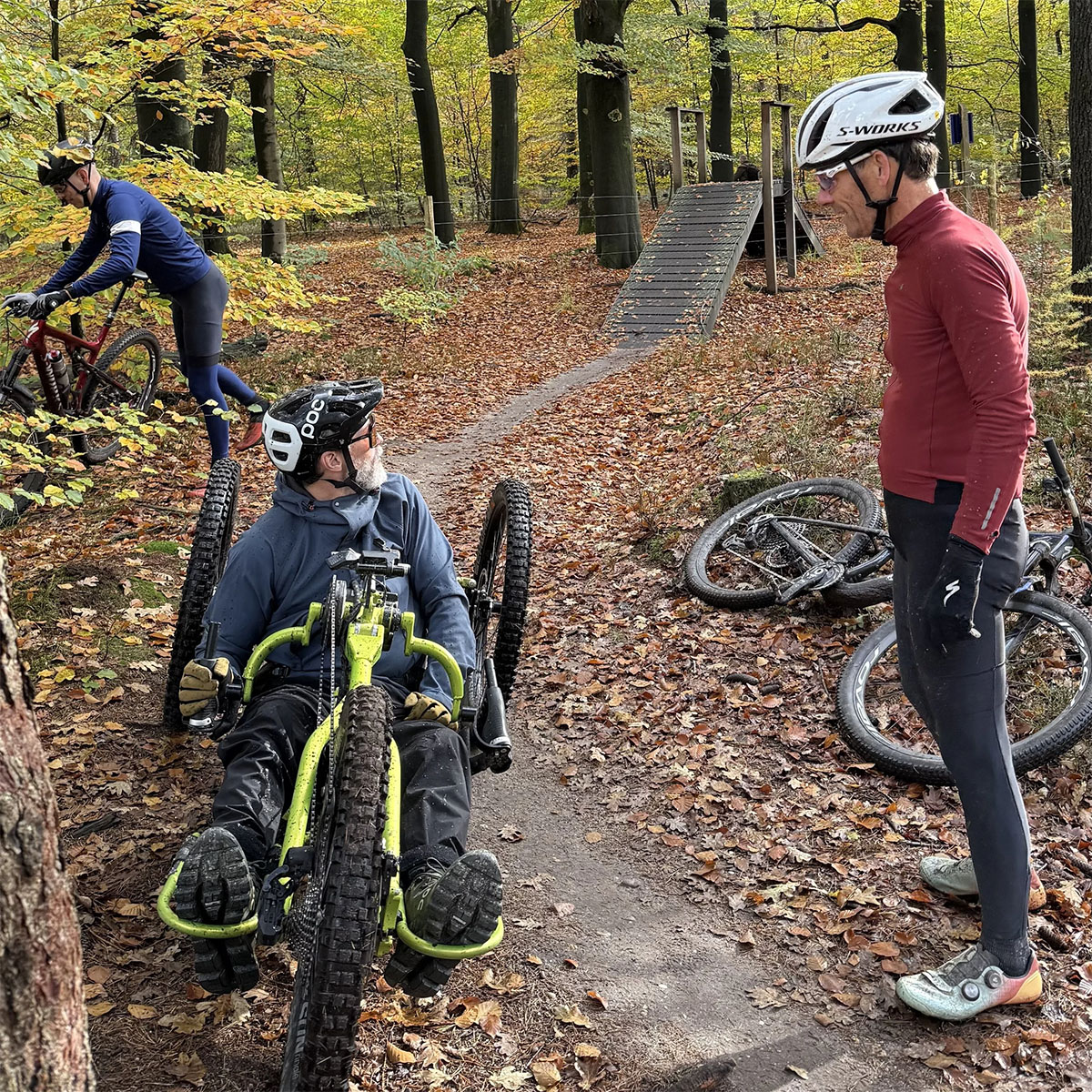 Uitgangspunt hierbij is dat adaptive mountainbiken geen afgezwakte vorm van de sport is. Het draait niet om ‘mee kunnen doen’, maar om volwaardig mountainbiken, met alles wat daarbij hoort. Techniek, uitdaging, grenzen opzoeken. Maar ook veiligheid, haalbaarheid en realisme.