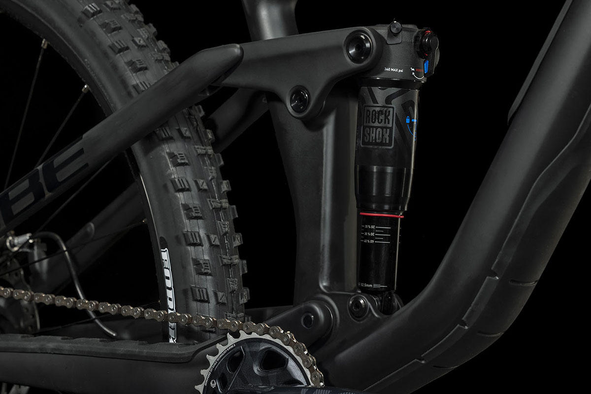 Bij het veersysteem houdt Cube vast aan de klassieke Horst-link in de liggende achtervork, waarbij de beweging van het achterwiel via een wip wordt overgebracht op een rechtop staande demper. De demperpositie is iets gewijzigd; die staat nu lager in het frame. Het gevolg is dat ook de staande achtervork wat vlakker ligt, waardoor de nieuwe frames in onze optiek wat ranker ogen.