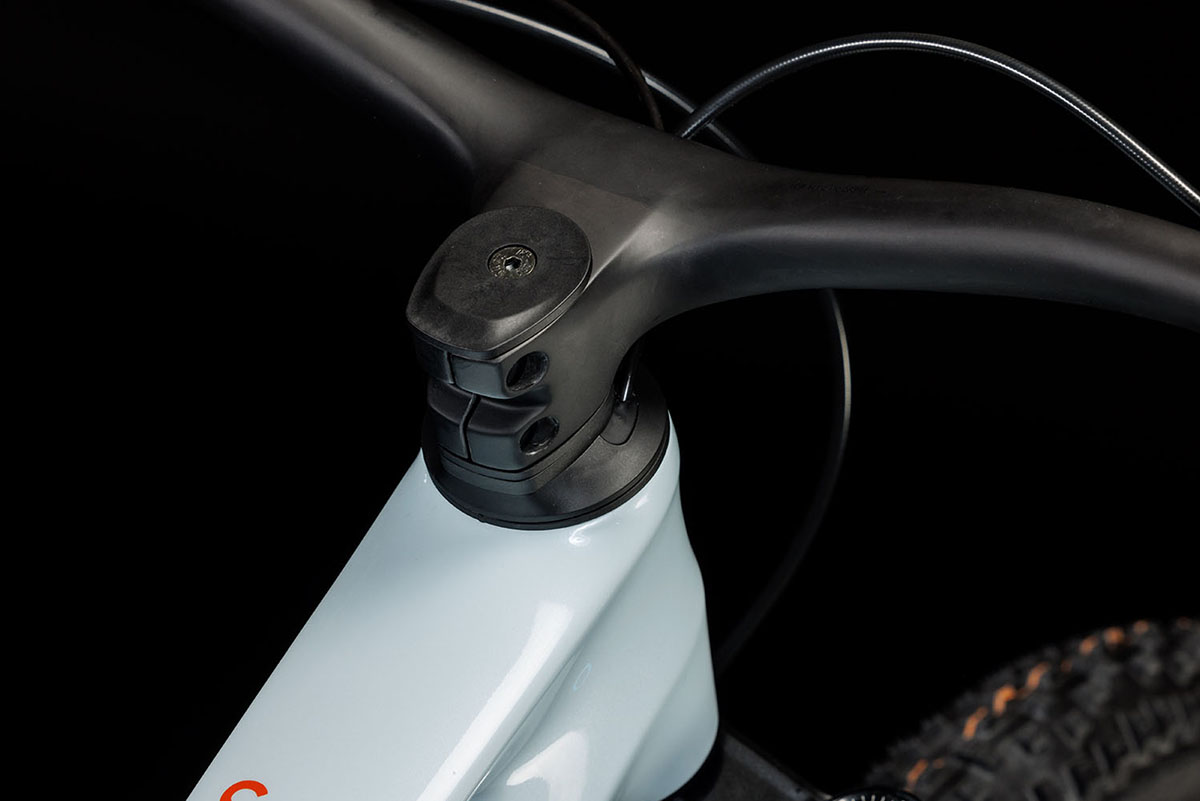 Qua geometrie biedt Cube nu verschillende opties. Dankzij een verstelbaar balhoofd kun je de zitbuis- en balhoofdbuishoek 0,6 graden steiler zetten. In de flauwste stand staat de voorvork nu 65,4 graden onderuit. De zitbuishoek staat met 75,7 graden tot 75,9 graden relatief rechtop. Hoe gemakkelijk het verstellen van het balhoofdlager gaat, moet nog maar blijken. Oók Cube voert nu de remleiding en kabels dóór het bovenste lager het frame in.