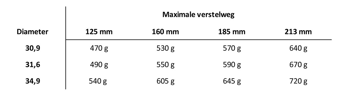 Bikeyoke brengt de Divine 2.0 dus in drie diameters, 30,9, 31,6 en de MAX-versie in 34,9 millimeter. In alle diameters heb je vervolgens de keuze uit een maximaal verstelbereik van 125, 160, 185 en 213 millimeter. Voor zowel de uitvoering in 30,9 als 31,6 millimeter betaal je 259 euro; zo’n 30 euro minder dan de oude Divine. De Divine 2.0 MAX met z’n 34,9 millimeter diameter kost 299 euro.