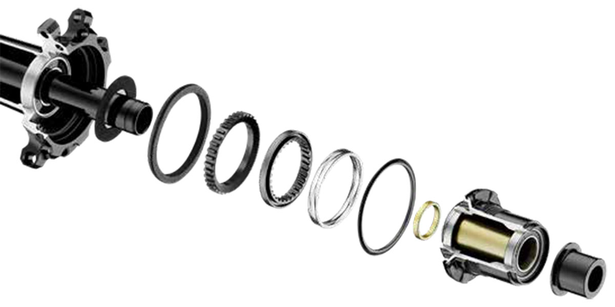 De naven zijn voorzien van afgedichte industriële lagers. De achternaaf heeft een Helical-Bevel Ratchet Drive System: een vrijloop met axiale ringen voorzien van 120 tanden en heeft dus een vrijloophoek van slechts drie graden. De axiale vertandingen is daarbij conisch. Dat verdeeld de krachten iets beter, wat gunstiger is voor de duurzaamheid. De vrijloopring op de cassettedriver schuift over een schuine splines. Daardoor is het contactoppervlak groter en kan het geheel dus lichter worden gemaakt. Bovendien wordt de vrijloopring zo actief aangedrukt onder trapkracht.