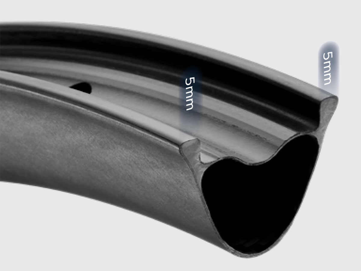 De XCR is de absolute topvariant. De carbon velgen hebben een 30 millimeter interne breedte en zijn gemaakt met nieuwe inzichten ten opzichte van het lamineren. De haakloze velgen hebben brede, flink afgeronde flanken, ‘Wide Guard Technology’ genaamd. Dit moet de velgen robuuster maken en bovendien de kans op stootlek flink verlagen. Dit soort velgconstructies zagen we eerder ook al bij velgen van bijvoorbeeld Enve.