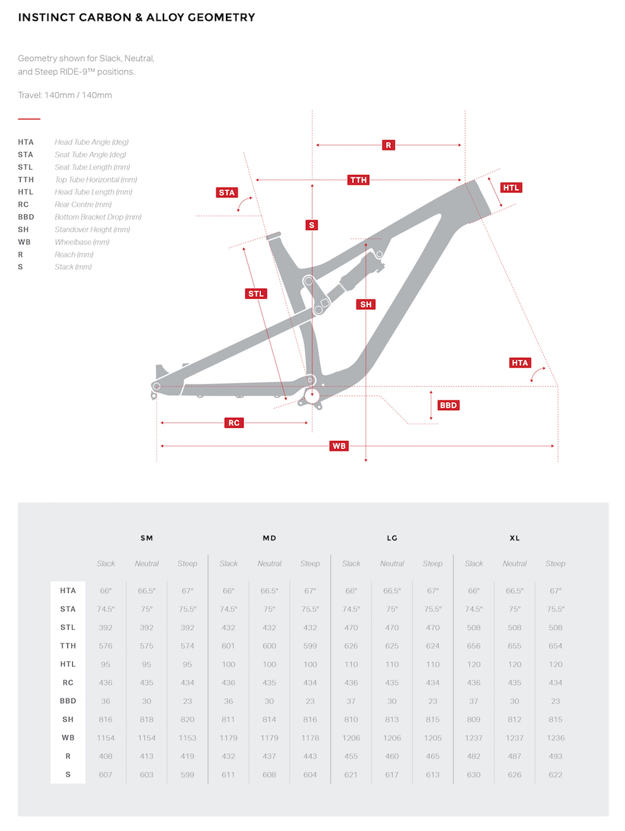 Daar blijft de update-slag niet bij. De veerweg van deze toch al zeer capabele fiets is namelijk van 130 mm vergroot naar 140 mm. Behouden blijven wel de Ride9 pasplaatjes, waarmee de geometrie van de fiets af te stellen is. Tot slot is de Instinct naast de standaard meegeleverde 29″ wielen met banden tot een breedte van maar liefst 2.6″ ook geschikt voor 27,5×3.0″ banden – als de noppen tenminste niet té hoog zijn; gemiddelde 2.8″-banden zouden ruimte over hebben.