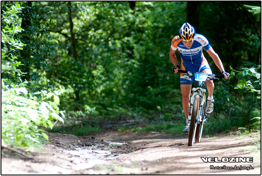 Dit weekend werd het NK mountainbike verreden in het Overijsselse Steenwijk, op de grens van de provicies Overijssel, Drente en Friesland. Op het staatsbosbeheer terrein van de Woldberg, was een mooie ronde uitgelegd, die vooral uitdagend werd door de ontelbare kuilen in het parcours. Het was ook een rondje waar van herstellen niet echt sprake was. Bergop was sprinten om boven te komen, bergaf was bijtrappen om op snelheid te blijven en de technische stukken waar je even je benen stil kon houden, vergden wel weer een andere lichamelijke inspanning. De zon, goede organisatie en het talrijk toegestroomde publiek zorgden echter voor een goede sfeer.