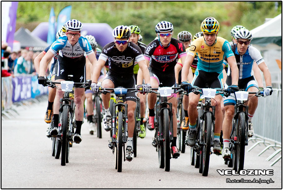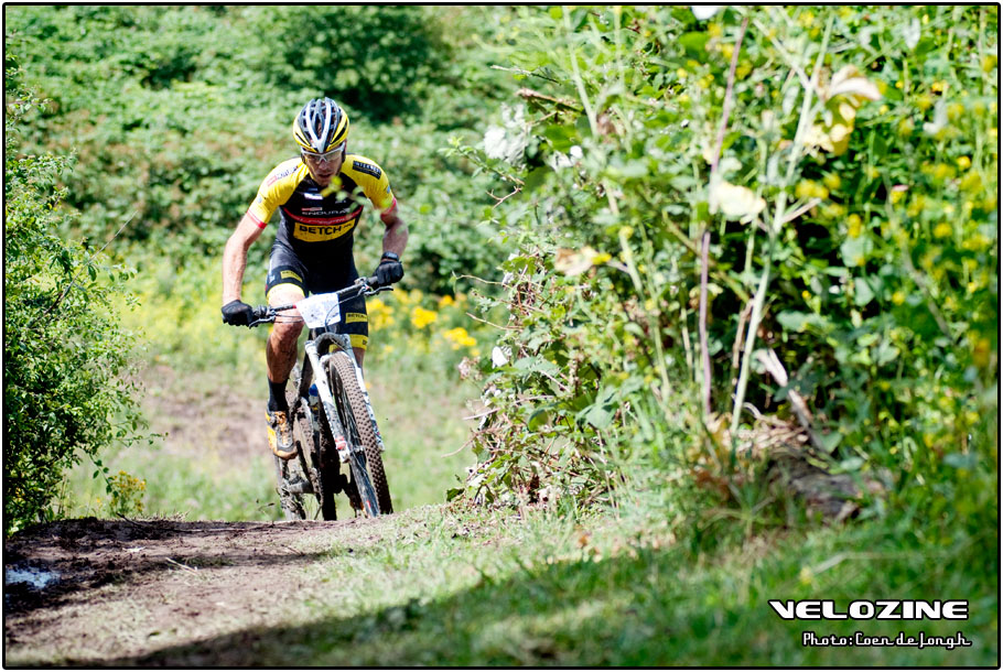 Hoe anders was de herenrace in de middag! De regen was opgehouden met uit de lucht vallen, in ieder geval hier, en de zon was druk bezig om door de wolken heen te breken. Samen met een matig windje zorgde dat ervoor dat het parcours supersnel droogde. In het begin was het hier en daar nog wat glibberig, maar als snel was iedereen blij met de keuze voor semi-slicks. De race zelf ging tussen de gebruikelijke namen: Hans Becking, Frank Beemer, Rudi van Houts en Michiel van der Heijden. Die laatste prolongeerde zijn Nederlandse titel.
