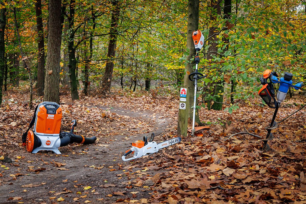 Stichting MTB Zuid-Veluwe is verantwoordelijk voor het onderhoud van zeven mountainbikeroutes met een lengte van in totaal 159 kilometer. Voor de stichting is de aanschaf van accugereedschap een schot in de roos. Slangen werpt zich op als fervent voorvechter voor accugereedschap voor onderhoudsploegen. De voordelen zijn duidelijk. “Bovendien zijn we op een punt beland dat het vermogen en de accucapaciteit geen belemmering meer zijn. We kunnen er bijna even lang mee werken als met de benzinevariant,” zo vervolgt Slangen. “Wij hebben professioneel apparatuur van Stihl en hebben ze voorzien van een specifieke connector. Via een app kunnen we zo van elk apparaat de status zien. Niet alleen de accustatus, maar ook wáár ze zijn en het aantal draaiuren. Dat laatste is dan weer handig met oog op het onderhoud van de machines. Zeker omdat we met een wisselende bezetting werken, is een goed overzicht houden van het machinepark daardoor vrij eenvoudig.”