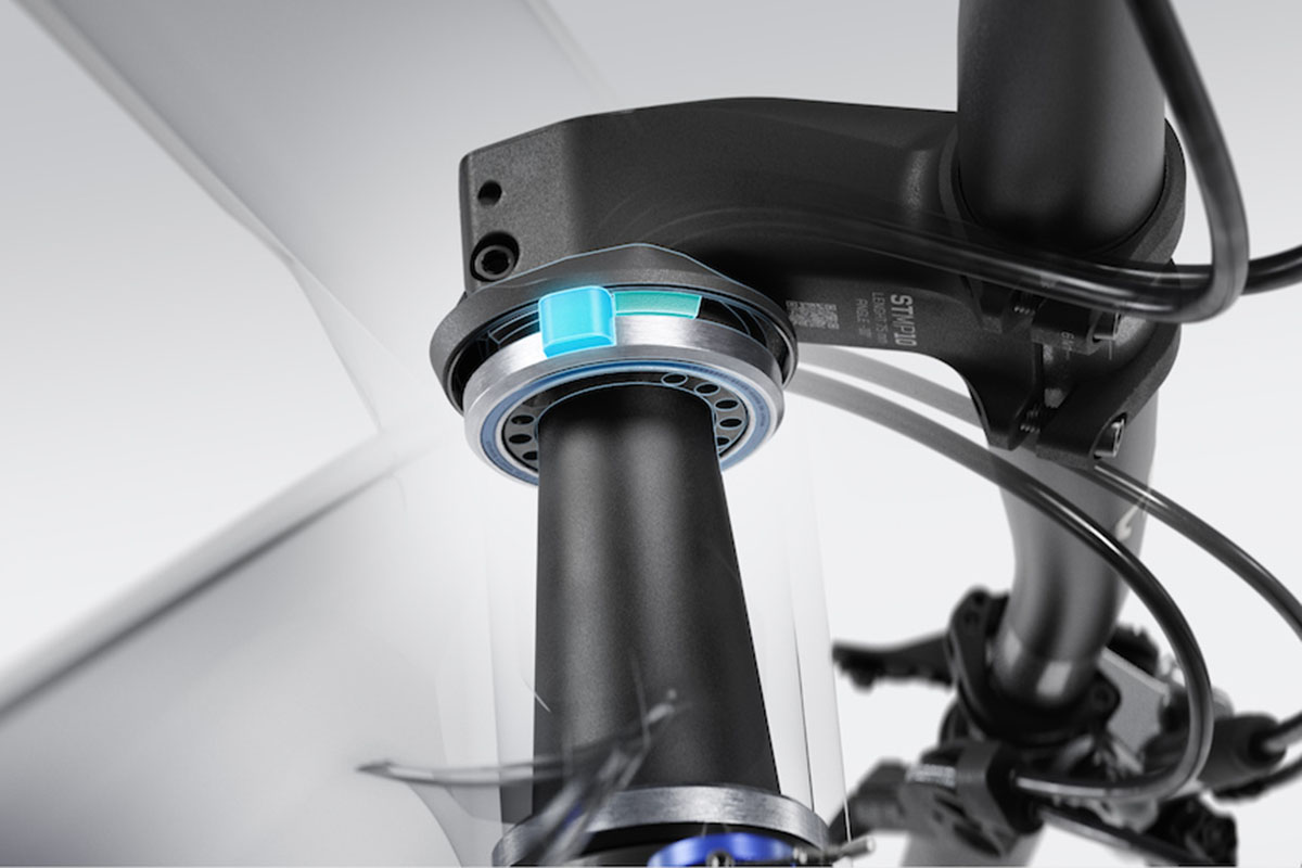 Vooraan laat Orbea de kabels en leidingen dóór het bovenste balhoofdlager het frame in verdwijnen. Het argument: er hoeven zo geen gaten in het carbon gemaakt worden, wat de constructeurs toelaat lichtere frames te maken. Immers; gaten zijn in de regel verzwakkingen. De keuze om het dóór het bovenste balhoofdlager te laten lopen heeft uiteraard impact op de onderhoudsvriendelijkheid van de fiets. Maar het moet gezegd zijn dan het bovenste lager niet extreem veel onderhoud vergt. Overigens ook opgemerkt dat Orbea de kabels niet door de stuurpen voert. Iets veranderen aan je zithouding is daardoor dus nog altijd vrij eenvoudig.