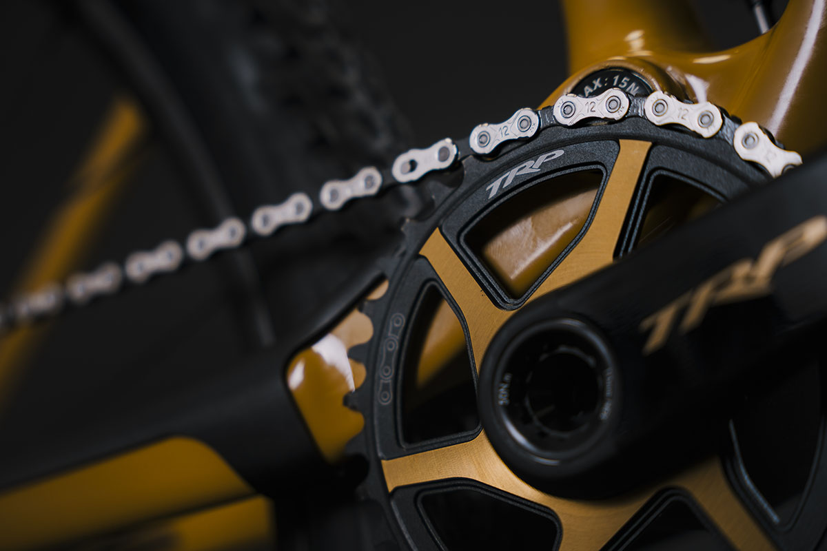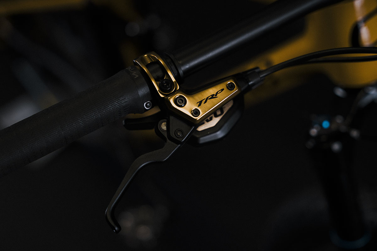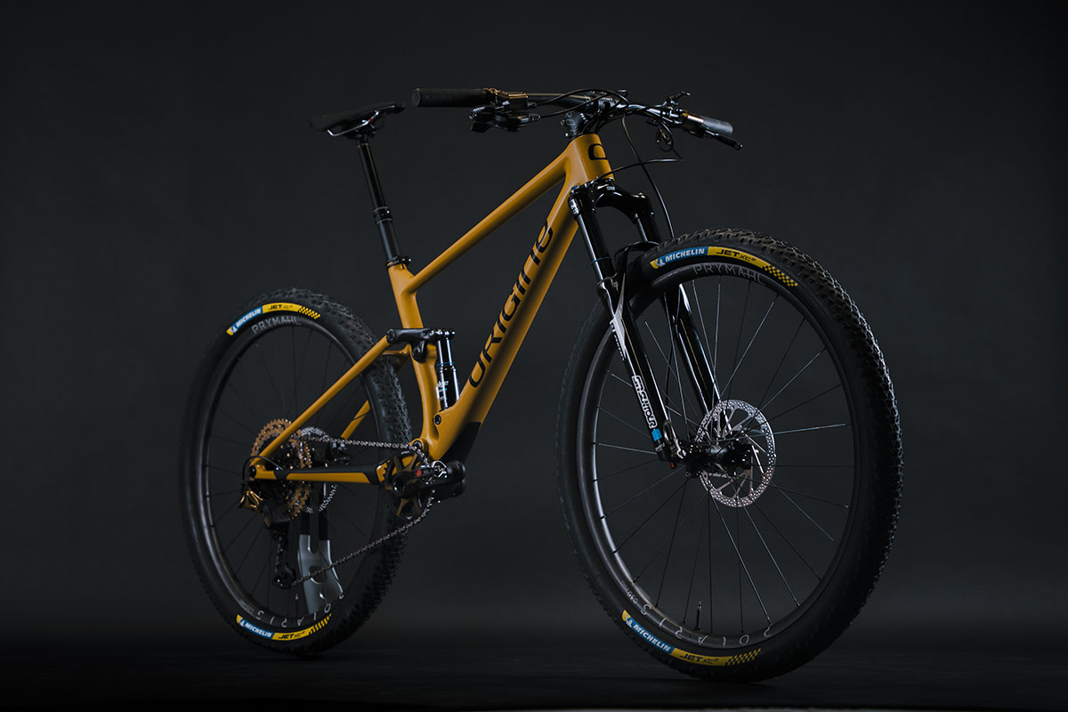De basis van de Team Edition is dezelfde Théorème FS 120 GTR die we eerder al testten op Velozine. Met 120 millimeter veerweg rondom is het een speelse xc-fully. De GTR is daarbij dus de lichtste versie, naast de GTO die Origine bij diverse van z’n carbon frames aanbiedt. In de balhoofdbuis van de Origine Théorème FS Team Edition is de voorvork Axon 34 Elite van Suntour gemonteerd. Ook de achterdemper komt bij Suntour uit het schap. Beide veerelementen zijn middels mechanische kabels vanaf het stuur te blokkeren. Het team wordt verder gesponsord door de Taiwanese onderdelenfirma TRP en zodoende prijkt er de 12-speed Evo 12-groep op de Team Edition. Ook de Evo X-remmen komen van TRP. Rond de Origine-eigen carbon wielen Prymahl Polaris C30 zijn Michelin Jet XC2 Racing Line-banden gemonteerd. Verder komt deze bike standaard met een Rockshox Reverb AXS dropper-zadelpen en een cockpit bestaande uit onderdelen van Ritchey, ControlTech en Prologo.