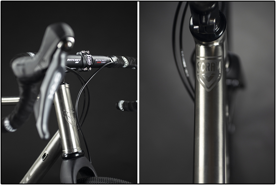 Pilot staat bekend om zijn maatframes en bij de Scram Pinion titanium gravelbike kan dat ook: de meerprijs voor een op maat gemaakt frame bedraagt €500,- Daarnaast kun je -uiteraard- de hele afmontage zelf kiezen, en kun je -als je écht loos wilt gaan- ook het kleurdesign van je frame zelf kiezen.