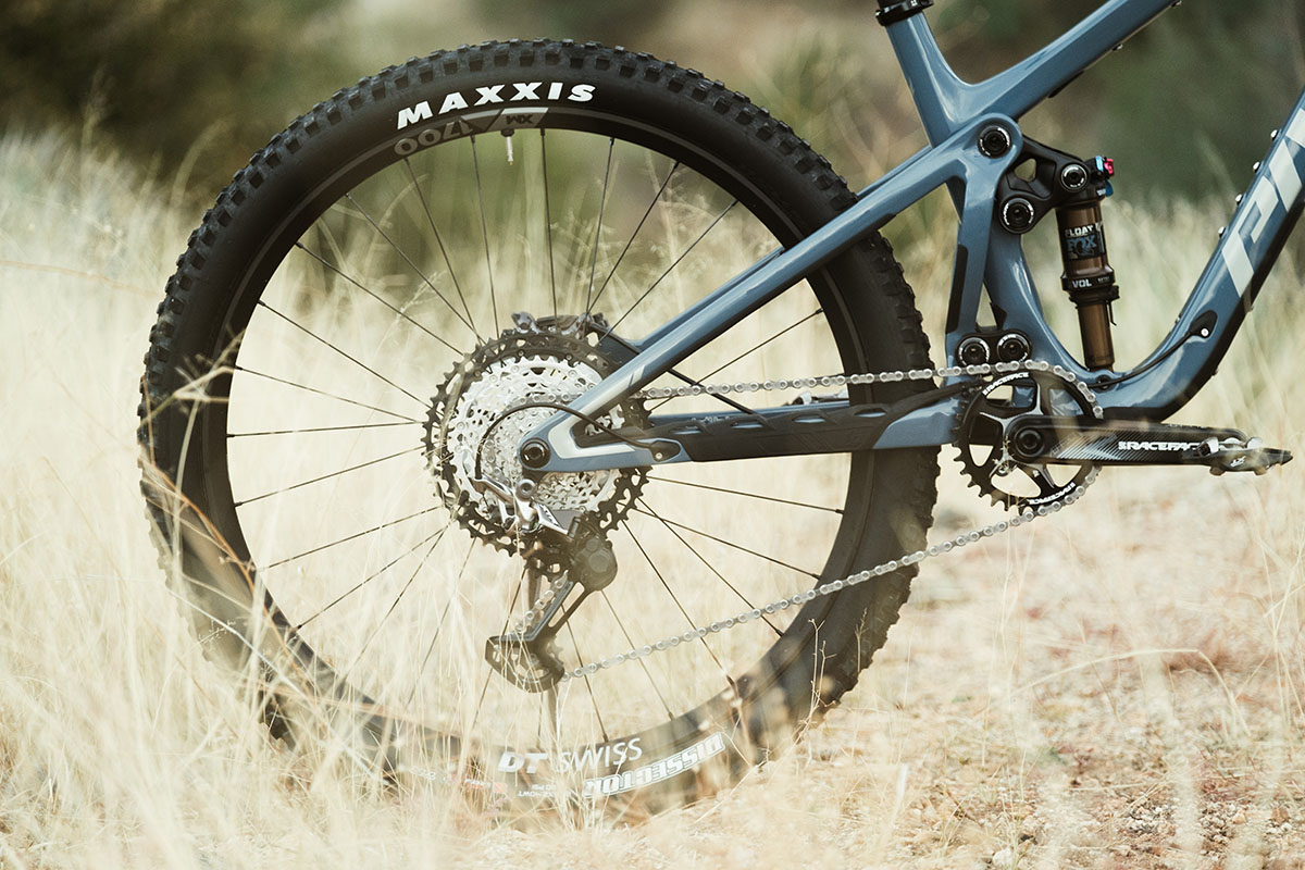Pivot werkt met zogehete builds en die zijn er in Race-, Pro- en Team-variaties, waarbij je telkens een Shimano- of Sram-versie kunt kiezen. Daarbij zijn sommige benamingen een tikkie verwarrend. Want dat wat ze ‘Race XT’ noemen komt eerder neer op een Shimano SLX/XT-mix met aluminium Newmen-wielen en een Race Face aluminium crankset. De Sram ‘Race X01’ is evenzo een combinatie van GX- en X01-aandrijving met een aluminium Sram-crank. ‘Pro XT/XTR’ houdt vervolgens een Shimano Deore XT-groepset in met duurder Newmen Evolution-wielset (en voor € 1000,- upgrade naar Newmen Carbon Advanced-wielen). De Sram-versie van de Pro-build heeft vervolgens wel een compleet Sram X01-afmontage. Voor nog eens € 2100,- (!) extra heb je een Pro-afmontage met Fox Live Valve en hoef je nooit meer na te denken over een lock-out/platform.