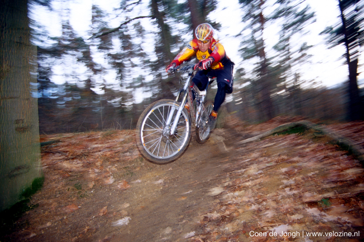 De toerkes die we zo’n 15 jaar geleden met hem rondom het Maasmechelse deden staan voor altijd in ons geheugen gegrift. Zijn verhalen, groots, kleurrijk – en soms ook nog waar – des te meer. Verhalen over hoe hij Bart Brentjens zijn leven had gered, nadat die op Mammoth Mountain zijn eerste World Cup had gewonnen. Verhalen over van het dak van een motel afspringen met je fiets in het zwembad. Verhalen over alle groten uit de mountainbikehistorie die niemand tot dan toe kende. Stuk voor stuk bijzondere verhalen, die steevast gepaard gingen met uitspraken als ‘Shitman!’, ‘ouwhoer, ik zeg ’t u!’ en zijn favoriete stopwoordje ‘weinig!’