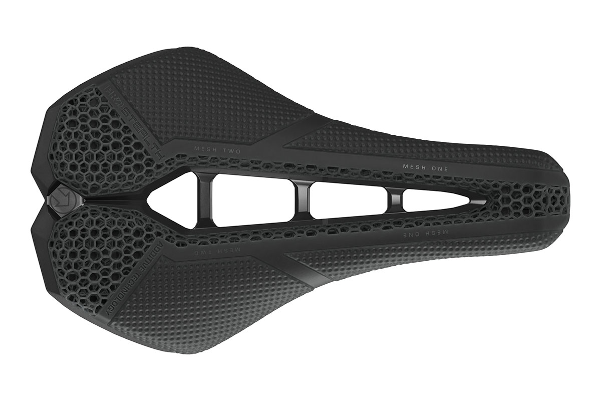 Net als bij de (inmiddels) talloze andere 3D geprinte zadels van onder meer Specialized, Trek, Fizik en Selle Italia, is het nieuwe Stealth 3D-zadel van Pro opgebouwd uit een driedimensionale rasterstructuur van EPU (polyelastomeer). Deze uiterst elastische kunststof is sterk en goed vormvast te printen. En de vorm, daar draait het om bij 3D-printen. Want waar je bij een traditioneel met schuim gevuld zadel je veelal één type schuim en dus dichtheid in het gehele zadel hebt, kun je met 3D-printen op elke plek een andere vorm en dus een andere mate van ondersteuning creëren.