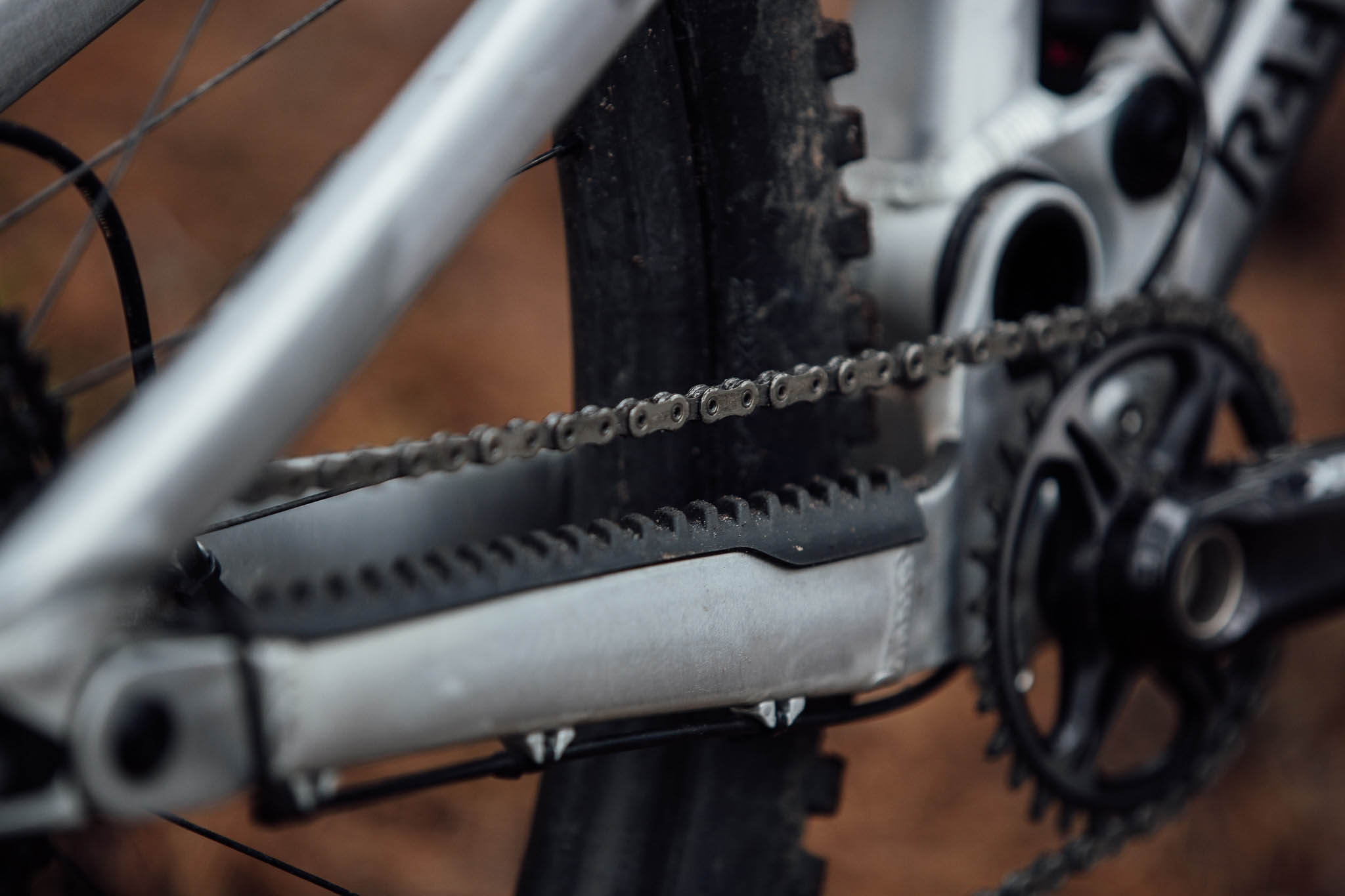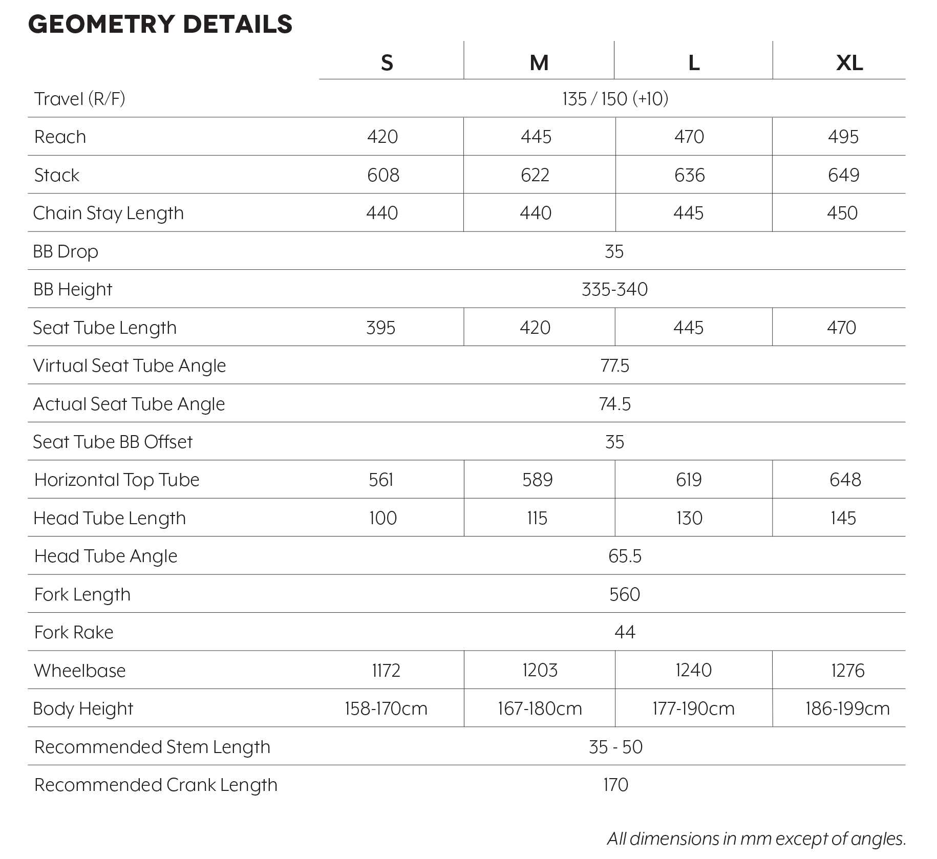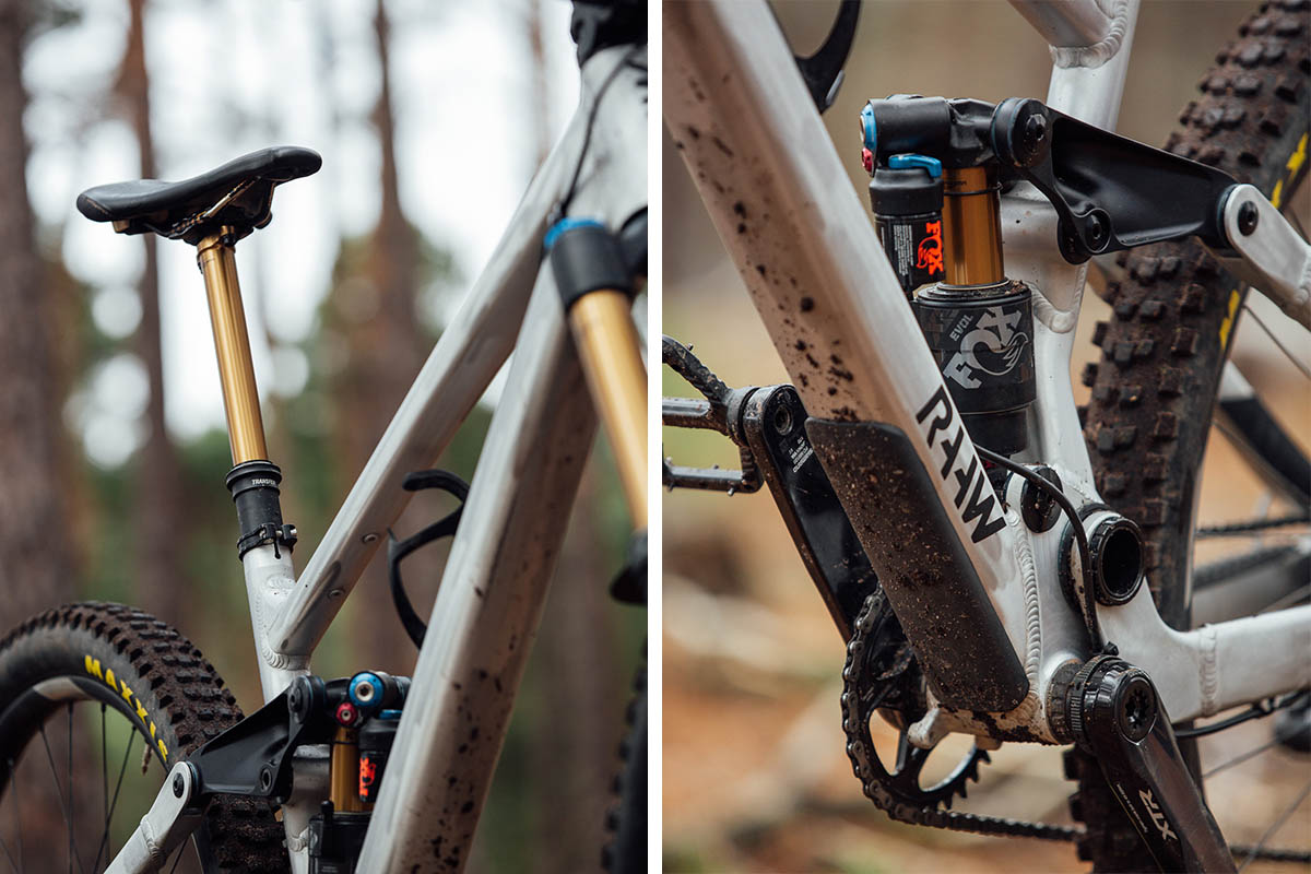 Geheel wat je zou verwachten in deze tijd, is de plaatsing van het hoofdscharnierpunt geoptimaliseerd voor one-by aandrijvingen. De genoemde ± 2,65 leverage ratio in het begin, samen met de in industrielagers opgehangen demper zou een enorm goed aansprekende vering betekenen. Tijdens het remmen is de vering in het eerste deel nog redelijk actief. Naar mate je meer in de 135 mm veerweg duikt, geeft het remkoppel ook méér tegenwerking aan de vering, voor méér support wanneer het er ruig aan toe gaat.