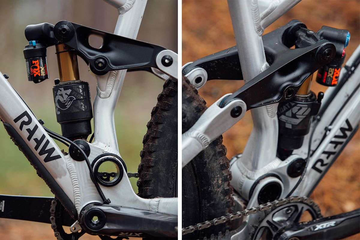 De Jibb wordt aangeboden met 4 demperopties. Twee schroefveerdempers: Fox’ DHX2 en de Formula MOD (alleen in combinatie met een losse framekit). Daarnaast kun je kiezen voor Fox-dempers met luchtveer; de DPX2 en Float X2. Opvallend genoeg spreekt Raaw zich in het persbericht wel expliciet uit over de voorkeur voor een luchtdemper, omwille van de grotere mate van afstelmogelijkheden. En dankzij de industriegelagerde dempermontage zou de Jibb met luchtdemper enorm dicht tegen een demper met schroefveer aanleunen, wat betreft soepel aanspreken, aldus Raaw. De 15% progressie van het veersysteem lijkt onsinziens ook wat beter passen bij een luchtdemper dan een schroefveer.
