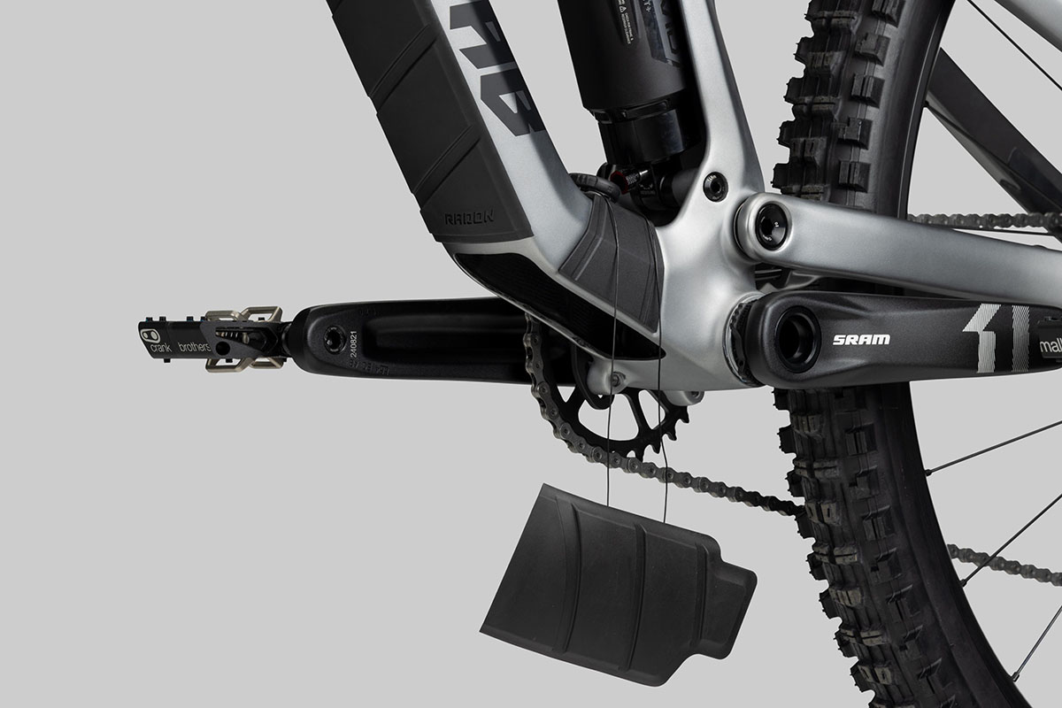 Voor dit seizoen brengt Radon een nieuwe Jab. Verschil met de vorige is nauwelijks te zien, maar het is er wel degelijk. Zo zijn de reach en de wielbasis langer en is de balhoofdbuishoek wat luier. Plus: in de balhoofdbuis steekt nu een asymmetrische lagerschaal, zodat je desgewenst zelf de hoek kunt tunen. Nu we het toch over de balhoofdbuis hebben: de kabels gaan net als bij de vorig jaar geïntroduceerde Jab MX (test hier) via de stuurpen en het bovenste lager het frame in. Maar gelukkig is de kabelpoort aan de zijkant van de balhoofdbuis niet verdwenen. Die zou je dus ook kunnen gebruiken.