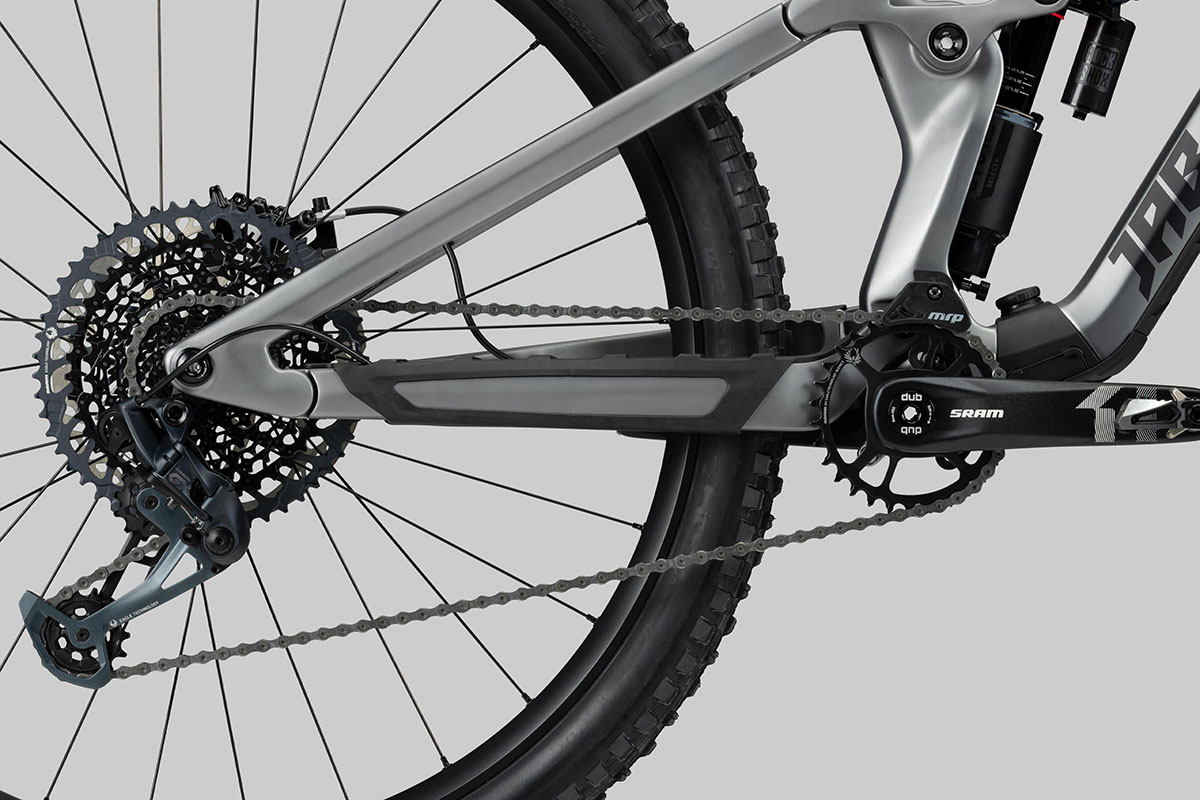 En dan is er natuurlijk het grote, 29 inch achterwiel. Ligt bij de mullet set-up van de Radon Jab MX de nadruk op wendbaarheid, bij de Jab met rondom 29 inch wielen ligt de focus volgens Radon op snelheid. Opvallend is wel dat dat grotere achterwiel ten koste gaat van de beschikbare veerweg. De Jab heeft in vergelijking met de Jab MX namelijk geen 160 millimeter veerweg aan de achterkant, maar tien millimeter minder. Aan de voorkant is de veerweg bij beide varianten 160 millimeter. Ook aanwezig in beide versies van de Jab: het kofferbakje bij de trapas.