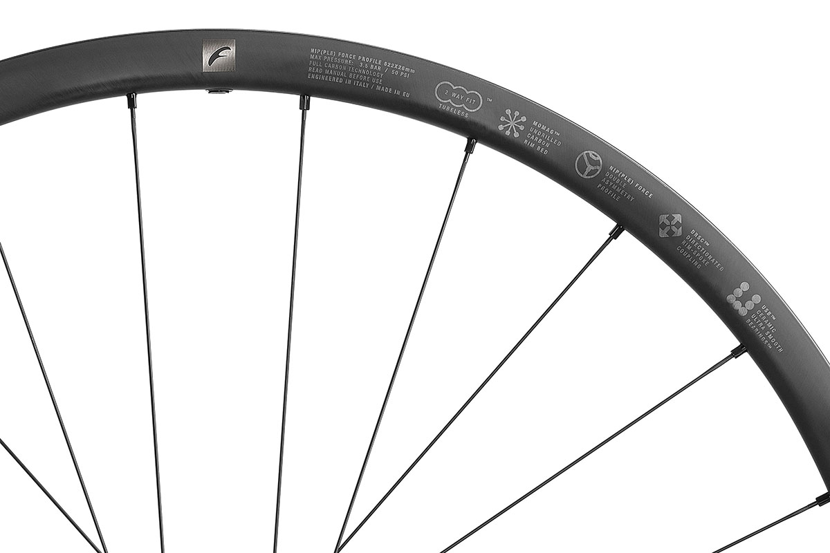 Qua velgprofiel is er niets veranderd; de velgen zijn dus eveneens 26 millimeter hoog en intern 28 millimeter breed. De binnenzijde van de velgen zijn niet doorboord voor de spaken en daarmee zijn ze dus tubeless-ready zónder gebruik te moeten maken van een velglint. Het verschil met Red Zone Carbon is dat Fulcrum bij deze Plus-wielen een nieuwe samenstelling van hars en unidirectioneel, high-modulus carbon toegepast. Daardoor is de velg 4 tot 5 procent lichter. Het productieproces maakt ook dat de velgen direct uit de mal strak afgewerkt zijn. Er is dus géén extra oppervlaktebehandeling nodig, behalve het lasergraveren van de logo’s. Fulcrum maakt deze velgen overigens niet in Italië, maar wél in Europa.