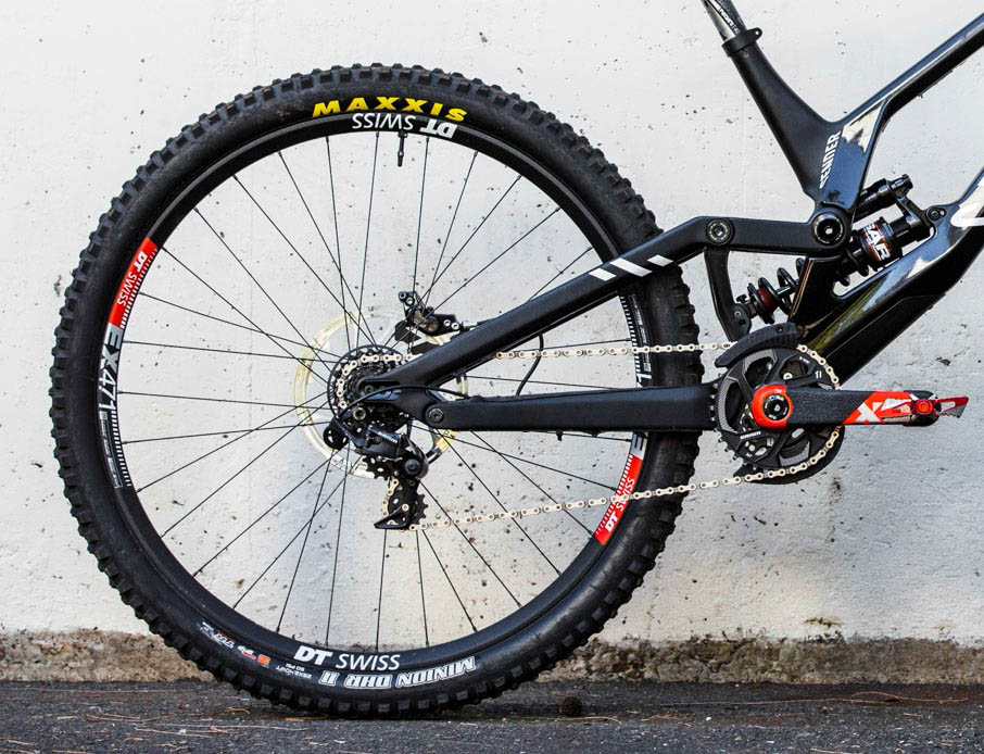 Nu 29″ wielen meer en meer de norm zijn geworden bij downhill mag het je dan ook niet verbazen dat de vernieuwde Sender 29″ wielen heeft. Of beter gezegd, tenminste één: dat vooraan. De Large en X-large modellen hebben óók een 29″ achterwiel; de kleinere maten zijn zogeheten ‘mullet-setups’, met een 27,5″ achterwiel.