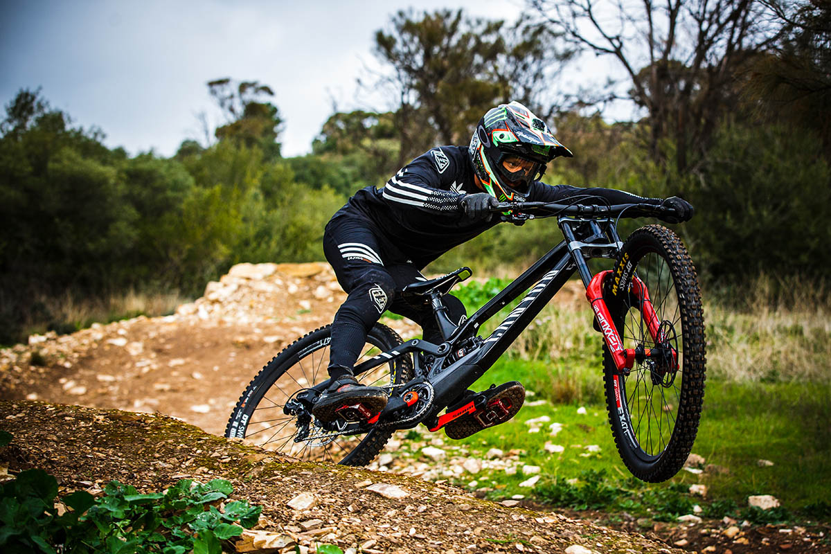 Canyon levert het nieuwe Sender CFR frame niet los en slechts in twee varianten als complete bike. De Sender CFR FMD heb je voor € 4.699. Die heeft een Fox 40 Performance Elite voorvork en een DHX2 Performance Elite. Shimano levert de Saint remmen en aandrijfcomponenten. De wielset bestaat uit DT Swiss 350 naven met FR 202 velgen met een binnenbreedte van 30 mm. Het topmodel, de Sender CFR kost € 5.799. Die heeft vooraan een RockShox Boxxer Ultimate voorvork, en de achterdemper is RockShox’ SuperDeluxe Ultimate. Sram levert de XO DH 7 speed aandrijflijn en de Code RSC remmen. De wielset bestaat bij deze bike uit DT Swiss 240 naven en FR560 velgen met een binnenbreedte van 30 mm.