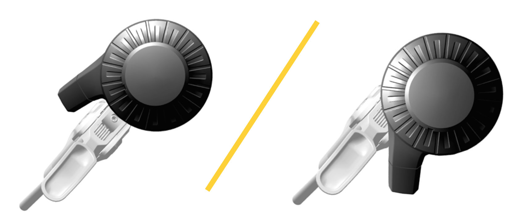Terug naar wat we wél zeker weten. Op de eerste plaats is RockShox’ nieuwe TwistLoc iets groter dan de vorige versie. De flens van het handvat is wat groter, wat de grip op het handvat moet verbeteren. Verder is-ie ook wat langer, doordat de klemband nu naast de behuizing zit en er niet ín. In tegenstelling tot de vorige versie heb je nu géén keuze tussen een rechte of schuine kabeluitloop. Bij deze tweede generatie loopt de kabel (of lopen beide kabels) altijd onder een hoek weg uit de TwistLoc. Hoe goed dit combineert met niet-Sram-remgrepen (en -shifters) moet nog blijken.