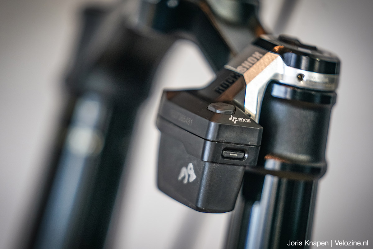 Verder is een groot verschil dat Fox Live Valve werkt met kabels tussen de voorvork, achterdemper, een sensor op de achtervork en een centrale batterij. Rockshox heeft Flight Attendant geheel ontwikkeld om aan te sluiten bij z’n AXS-draadloze platform. Het is dan ook van uit de AXS-app uit te lezen en in te stellen. Maar het betekent ook dat elk component een eigen batterij heeft. Zo komen er dus minimaal vier batterijen bij. De vork- en achterdemper zijn voorzien van de AXS-batterij die je ook op Srams derailleurs en de Rockshox Reverb AXS-dropper tegenkomt. Verder heb je nog een batterij in de trapsensor of vermogensmeter én nog een knoopcel in de Pod-controller op je stuur.