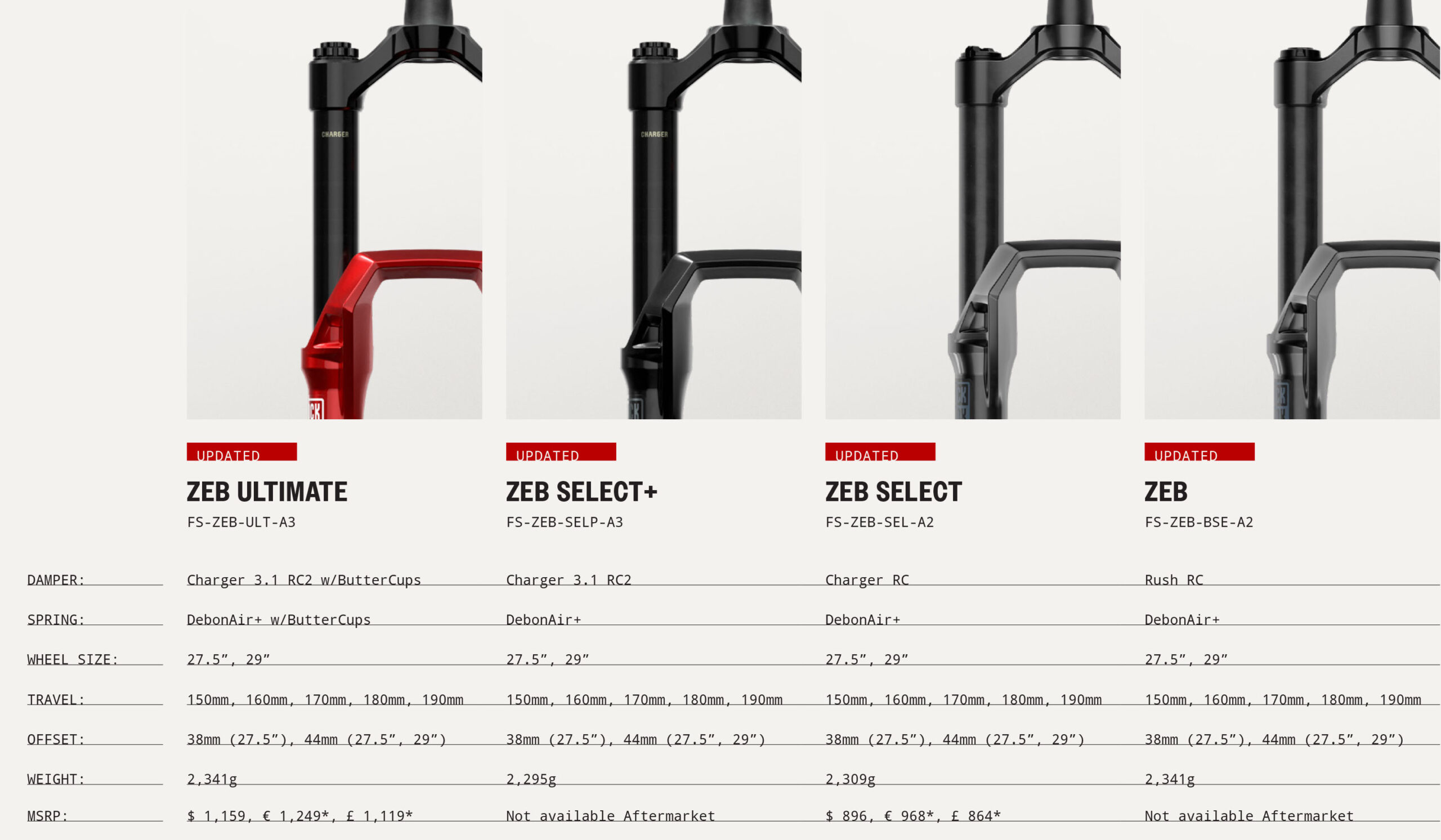 Overzicht Rockshox Pike, Lyrik en ZEB 2025