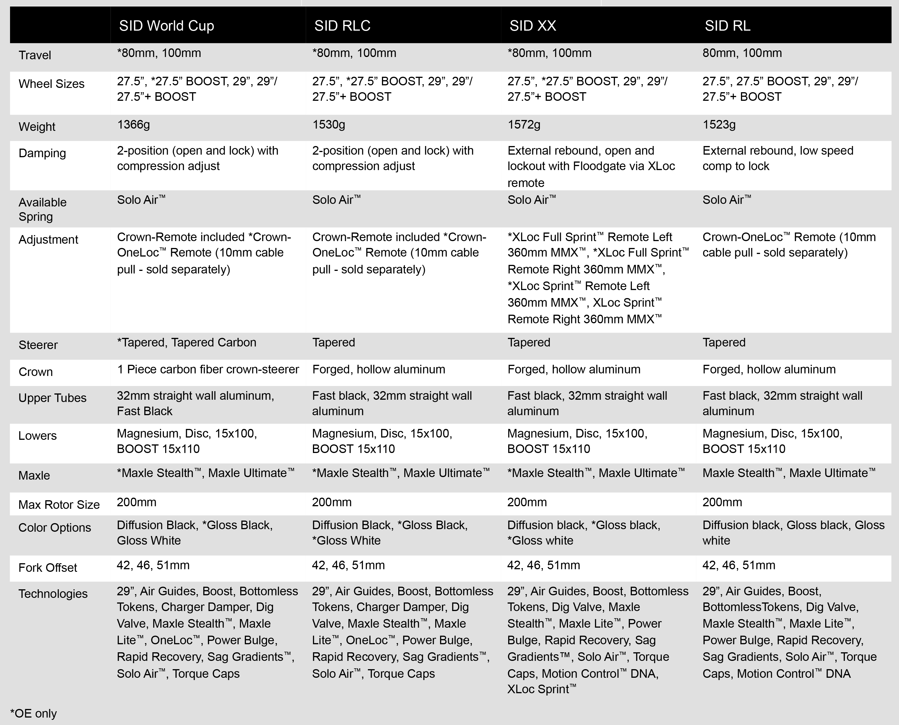 De eerste SID uit 1998 was volledig toegespitst op XC racing. Gewicht was daarbij een zwaarwegend (…) thema en de SID’s waren absolute lichtgewichten. Om stijfheid stonden ze niet bekend en bij de modellen die volgden werd dat imago nauwelijks anders. Na een vergroting van de binnenpoten van 28 naar 32 mm werd dit een stuk beter, maar dat ging gepaard met een toename van gewicht. De SID werd ook breder ingezet: Er kwamen SID’s met 120 mm veerweg voor lichte trailbikes. Dit verandert met de nieuwste generatie. Gewicht is opnieuw het speerpunt en met 100 mm veerweg (en op verzoek van fabrikanten zelfs 80 mm!) is het inzetgebied weer strak omkaderd: XC racing.