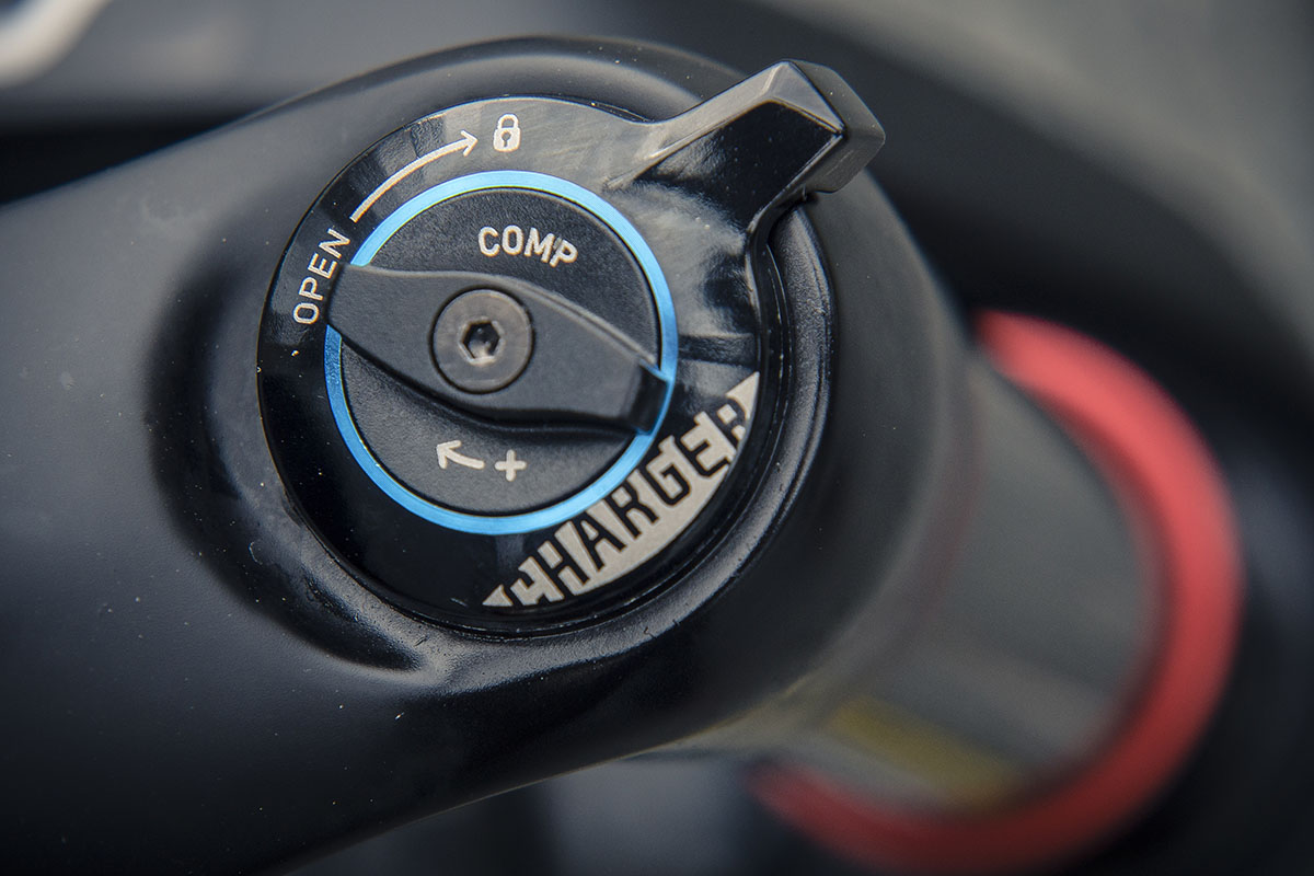 De belangrijkste upgrade vinden we aan de binnenzijde: Een Charger demper. De demper die zijn faam verdiende in de alom geprezen Pike. De Charger demper is volledig afgesloten, waarbij een rubberen blaas de verplaatsing van olie in het systeem opvangt. Doordat er geen lucht in de olie van het dempingscircuit komt, blijft de demperkarakteristiek veel meer consistent in alle omstandigheden. De voorvork reageert zodoende beter én fijngevoeliger bij zowel hoge als lage snelheden.