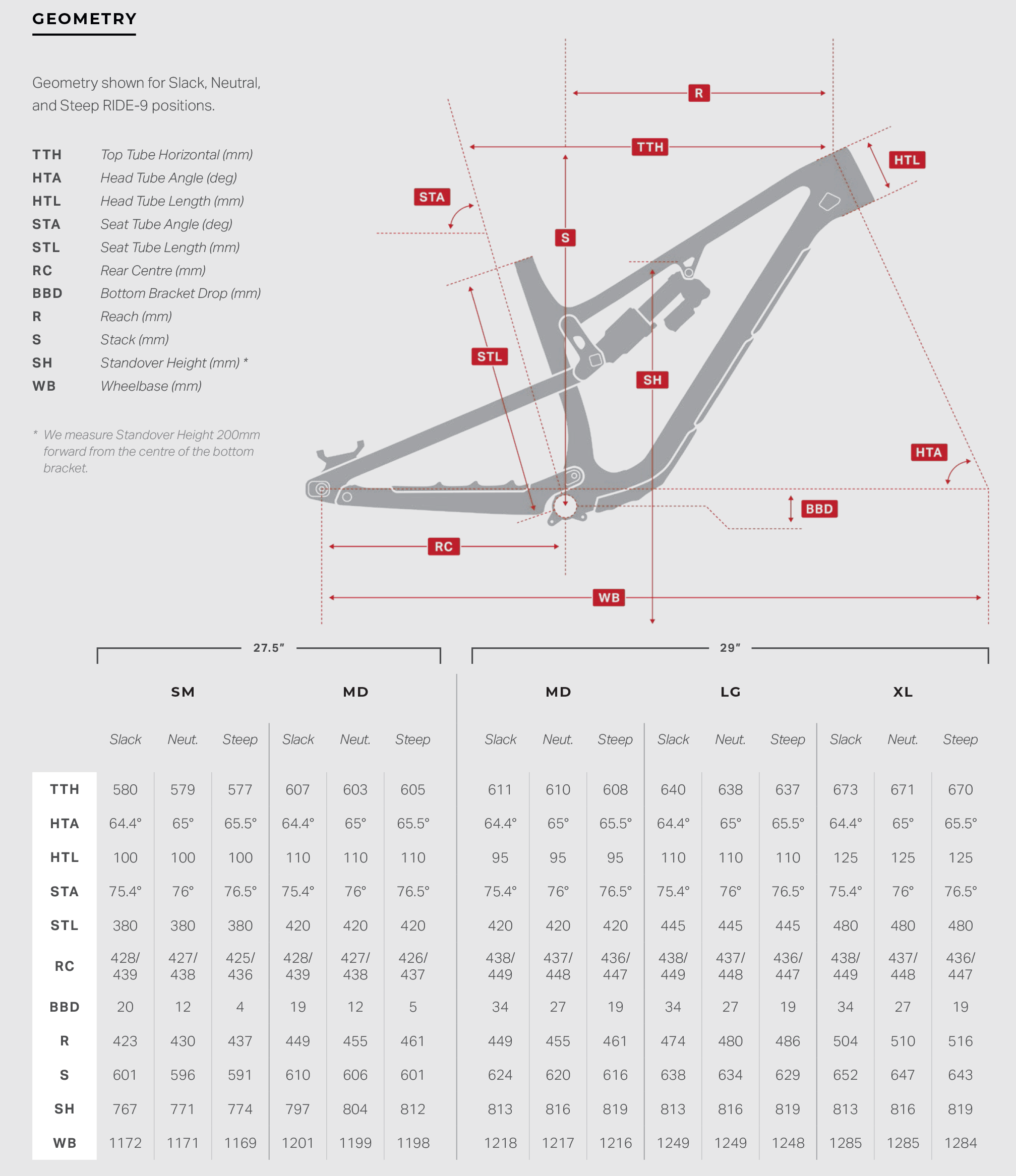 Dat de 2021 Altitude een samensmelting is van de ‘oude’ Altitude en Instinct BC Edition zie je het duidelijkst terug in de wielmaten. Juist: het zijn er twee. Framemaat S krijgt 27,5″ wielen en L en XL zitten aan 29″ vast. Enkel bij framemaat M heb je keuze. De rechte bovenbuis wordt overigens bij maten S en M wat krom getrokken voor extra standover. Hoewel veerweg voor en achter gelijk blijven zorgen de twee wielmaten voor een aantal verschillen tussen maten. Zo krijgen de 27,5″ fietsen vorken met 37 mm offset, terwijl de 29″ fietsen het met 42-44 mm doen. Bij de grotere fietsen is de achtervork ook 10 mm langer. Opvallend daarbij: door de verstelmogelijkheid is de kortste stand van de 29″ frames hetzelfde als de langste achtervorkstand van de 27,5″ frames.