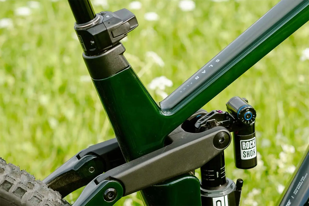 De Slab Plus volgt de moderne enduro-geometrie: lang, vlak en met een rechte zit voor beter klimgedrag. Alle framematen hebben dezelfde 64 graden balhoofdhoek en 77,8 graden zitbuishoek. Ook is de liggende achtervork bij alle vier de beschikbare maten 448 millimeter. De frames zijn laag, met een korte zitbuis om zodoende ook ruimte te hebben voor een lange dropper-zadelpen. Bij de grotere maten is de balhoofdbuis ook relatief kort, wat samen met die korte zitbuis de mogelijkheid geeft om de framemaat af te stemmen op de gewenste rijeigenschappen. Kies de grotere (lees: vooral langere) voor meer stabiliteit, de kleinere voor meer wendbaarheid. Maar met slechts vier framematen is de overlap en daarmee de keuzevrijheid uiteindelijk niet echt groot.