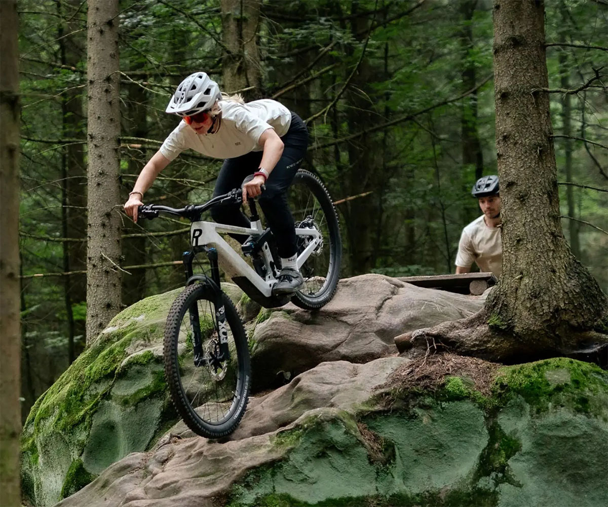 Rose bouwt met de Slab Plus verder aan z’n e-mountainbike-aanbod. Daarmee staat de teller op drie e-mtb-modellen. Met daarbij een toch wel opvallende spreiding. Want waar de File Plus met z’n lichte TQ-motor met 60 newtonmeter trapondersteuning en 150/140 millimeter veerweg vooral mikt op toerrijders en trailliefhebbers, begint de reeks met de Bonero Plus trailhardtail. Een segment waar niet veel merken warm voor lopen. Om tot een relatief lichtgewicht e-mountainbike te komen past Rose ook bij deze trailhardtail de compacte TQ-motor toe. Met de Slab Plus vult Rose z’n compacte assortiment aan de andere kant van het spectrum aan. Deze bike heeft een krachtige Bosch-motor, 800 wattuur-accu, 29 inch wielen rondom en 170/160 millimeter vering. Daarmee positioneert Rose de Slab Plus als e-bike voor rijders die het ruigste terrein opzoeken en graag lange, technische afdalingen verorberen. En dat, zoals we dat van Rose kennen, zónder daarbij de portemonnee tot op de naden open te trekken.