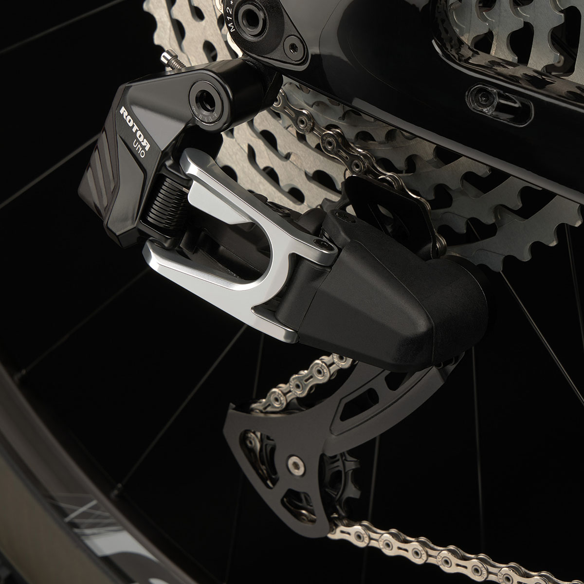 De eerdere generaties van Rotor Uno werkten met een hydraulische actuatie. De nieuwe Uno-groepen schakelen elektronisch en draadloos, ondersteunen 10 tot en met 13 versnellingen.