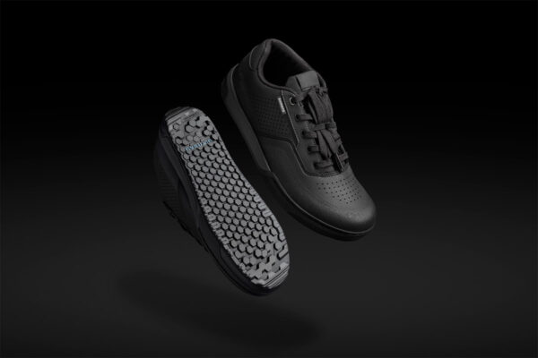 Onderop de carbon zool is ‘Tachyon’ rubber toegepast om voldoende grip te genereren wanneer je onverhoopt toch een trailsectie moet lopen. Onder de voorkant én de hiel zijn losse noppen te monteren om extra houvast in slechte omstandigheden te geven. De neus is beschermd met een extra laag rubber. De inlegzool bestaat verder uit 45 procent gerecycled materiaal.