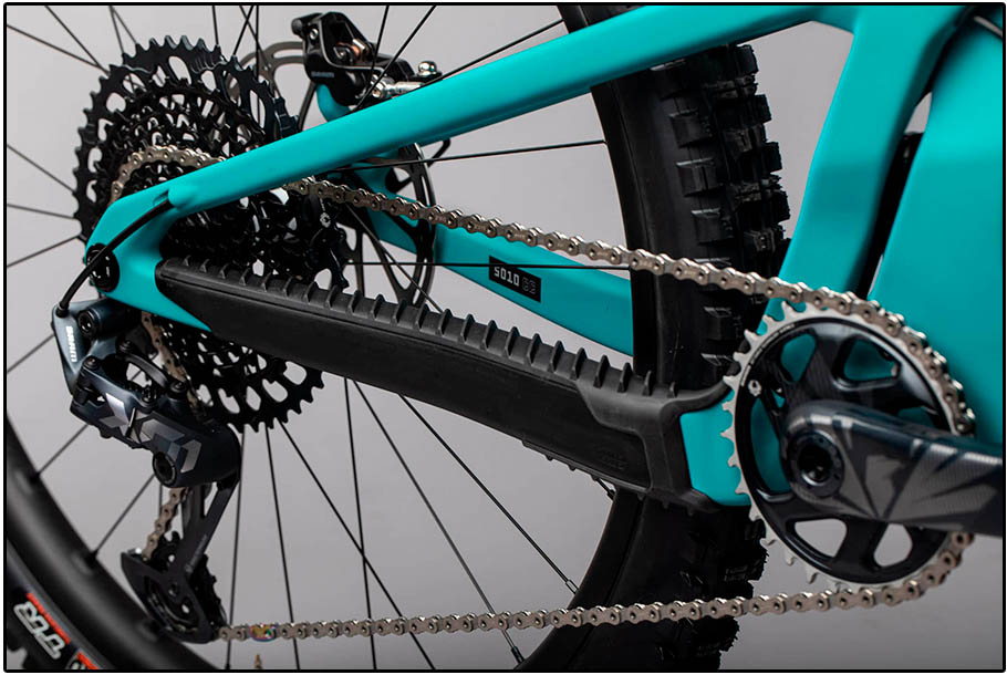 Een hele mond vol, maar Santa Cruz voorziet de 5010 van ‘proportionele achtervorklengte’. Dat wil zoveel zeggen als dat de achtervorklengte groeit met de framemaat. Bij de maatjes XS en S meet de achtervork 423 mm. Bij de daaropvolgende framematen is de achtervork telkens 3 mm langer per maat. Een logische gedachte; alle maten van een frame nemen toe per framemaat, maar verhoudingsgewijs zit een groter persoon méér op het achterwiel dat iemand die met een XS-frame op pad gaat. En dus geeft een XS-frame niet dezelfde ‘ervaring’ als een L-frame, simpel gesteld. Met deze stap wordt dat enigszins ondervangen.