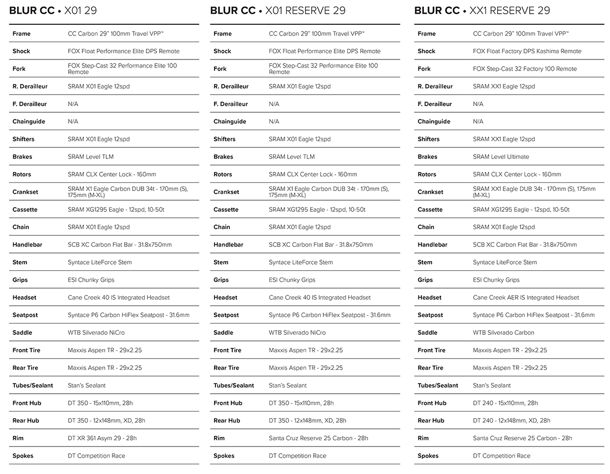 Blurren kun je vanaf €4.299 met de ‘instapper’. Boeit geld uitgeven je niets (en heb je het genoeg) dan neemt de Santa Cruz dealer graag €9.399 van je aan in ruil voor de Blur met het CC-frame, een Eagle XX1 1×12 afmontage en Santa Cruz’ eigen Reserve carbon wielset.