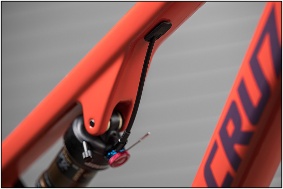Net als de nieuwe Highball is de nieuwe Blur er alleen als 29er én one-by specifiek en Boost-achternaaf compatible. Het frame heeft ruimte voor 2 bidons en uiteraard kun je intern een dropper kabel kwijt. De achterdemper is met een remote lockout uitgerust (die eveneens binnendoor loopt) en, op het instapmodel na, schakel je met die remote ook de voorvork. Ook de Blur is lang, zit je er vrij recht op, terwijl de vork vrij vlak ligt. Moderne geometrie… and then some…