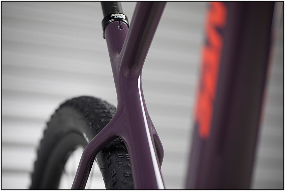 Toch hebben de surf dudes de hardtail volledig opnieuw ontworpen, waarbij de 27,5” optie is vervallen. Het frame heeft een nieuwe ‘lijn’. De staande vork is duidelijk lager aan de zitbuis ‘aangezet’, mét reden. De zadelpen is met 27,2 mm ook relatief dun. Ook mét reden. Wat die reden is? Comfort. Het geheel flext beduidend meer: