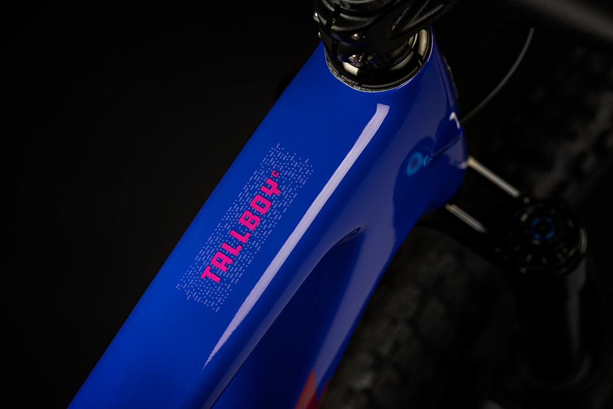 Santa Cruz heeft de 2023-Tallboy in twee smaken carbon; een C- en CC-versie. De CC-versie is dankzij een iets andere samenstelling van het carbon zo’n 200 tot 250 gram lichter dan de C. Lichter, maar ook duurder. Op alle andere details verschillen de C- en CC-frames niet. Dat betekent dus dat alle kabels en de remleiding door interne buisjes lopen om geklapper tegen te gaan. De trapaspot heeft schroefdraad en je kan een kettinggeleider monteren via de ISCG05-montagepunten. Verder heeft de Tallboy een Universal Derailleur Hanger en is dus compatibel met de binnenkort te lanceren nieuwe direct mount derailleurs van Sram.