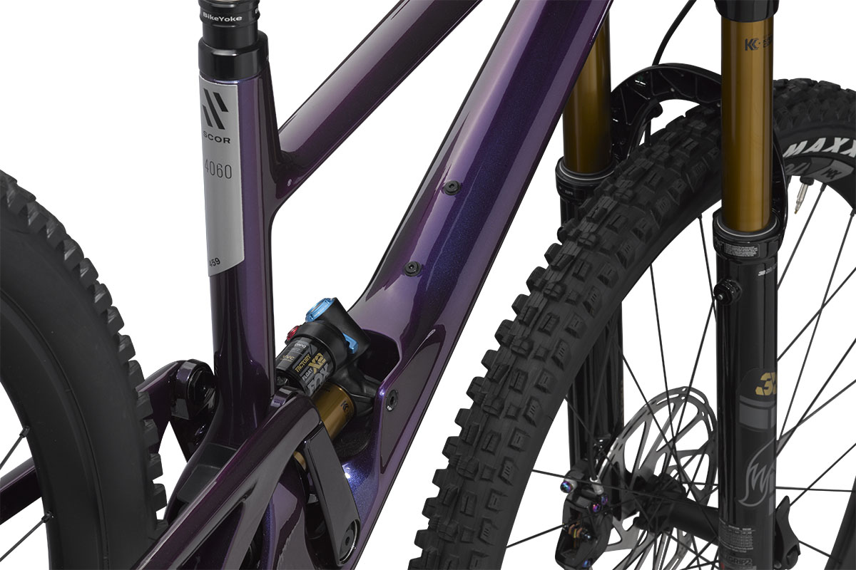 Alle lagers van het veersysteem zijn voorzien van Enduro Max-lagers. Het systeem – dat ‘Lower-Link Activated Virtual Pivot Suspension’ genoemd wordt – heeft een relatief progressieve veercurve. De Scor 4060 zou daarmee poppy zijn, en dus gemakkelijk het luchtruim in te ‘piloteren’ op een lip, jump of drop. Bovendien is het systeem geschikt om zowel met een lucht- als met een spiraalgeveerde demper te werken.