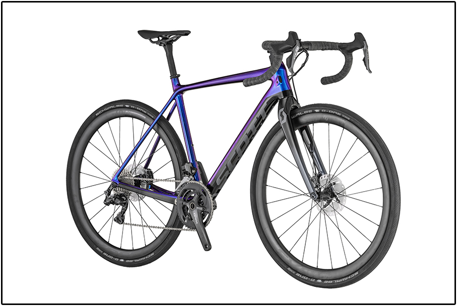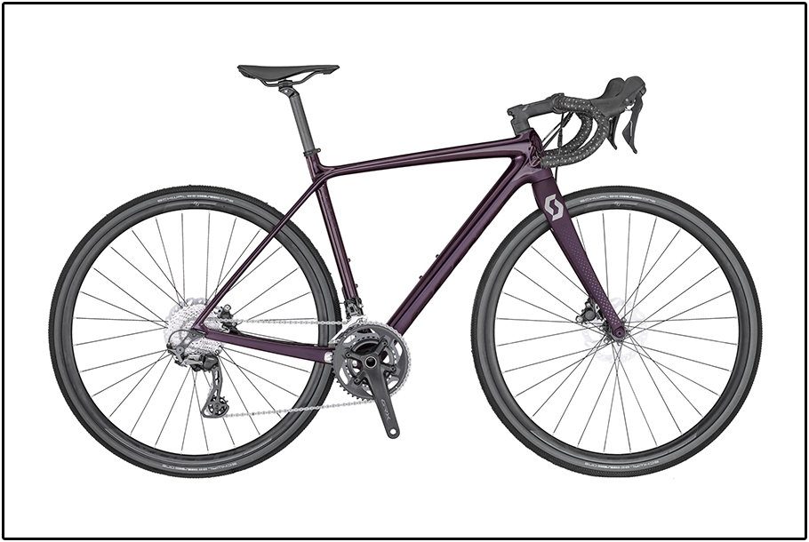 In het gravel-segment houdt Scott ook nog eventjes vast aan hun Addict frame, dat ook al enige tijd dienst doet als de top-cyclocrosser. Op de website wordt de Addict Gravel, zoals hij nu heet, ook nog gewoon onder het kopje ‘cyclocross’ geschaard. De Addict Gravel is dan ook nog steeds een zeer sportief ingestelde gravelracer; ze komen standaard met ‘maar’ 35 mm banden en heel veel breder ga je niet comfortabel kunnen monteren. Voor 2020 is de hele serie voorzien van Shimano’s GRX onderdelen. Bij de Addict Gravel 10 betreft dat de Di2 versie. Die kost dan ook €6.499. De 20 en 30 doen het met de mechanische GRX voor respectievelijk €3.799 en €2.999.