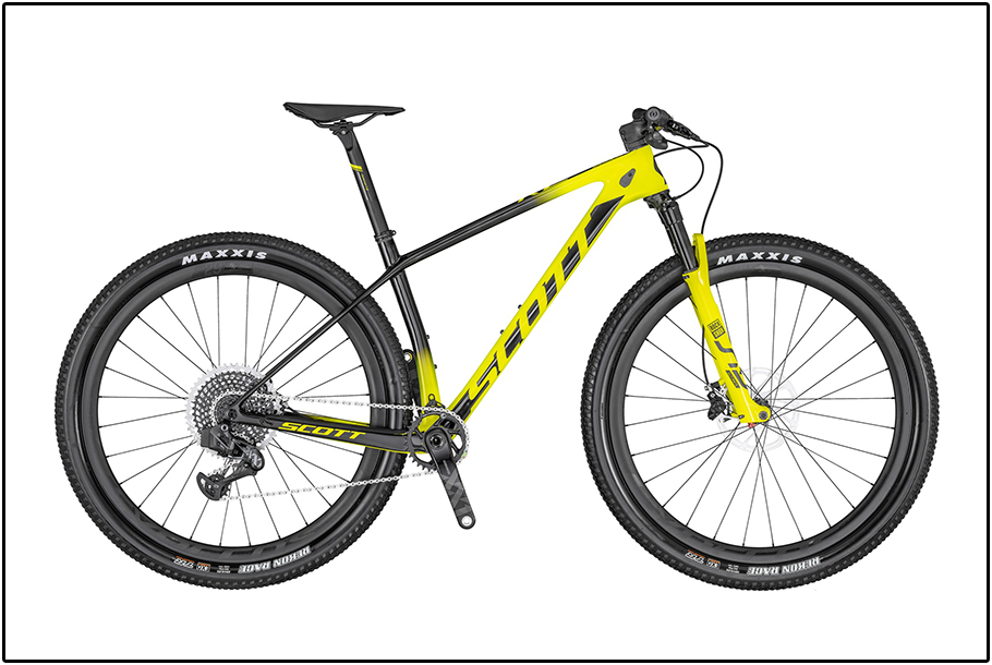 Niet alleen met de Spark RC heeft Scott één van de lichtste frames in zijn categorie. Met de eveneens in 2016 geïntroduceerde Scale hardtail zette Scott dé referentie voor extreem lichte hardtail frames. Ook dát frame is in ongewijzigde vorm nog altijd een speerpunt van Scott’s 2020 lijn. In de ‘RC’-afdeling vinden we nu 4 modellen, waarbij de goedkoopste versie €2.999 kost. Bij deze RC 900 Team heb je dan het HMF-carbon frame dat circa 150 gram méér weegt dan het HMX frame dat bij de twee RC 900 World Cup modellen gebruikt wordt. Qua afmontage krijg je een mix van Sram’s XO1 Eagle, X1 en GX onderdelen en een RockShox SID Select voorvork. Voor €1.000 méér heb je op ditzelfde frame een volledige 12-speed XTR afmontage. Wil je een lichtere fiets, dan is er de RC 900 World Cup met het HMX frame en een volledige Sram XO1 Eagle groep. Vooraan is er ook een upgrade in de vorm van een RockShox SID Select+ vork. Deze fiets kost je €5.599. Heb je nog €1.200 meer te spenderen, dan kun je terecht bij de fiets die Nino Schurter nog al eens succesvol inzet: de RC 900 World Cup AXS. Bij deze fiets schakel je draadloos en vind je RockShox topvoorvork, de SID Ultimate. Het allerlichtse HMX-SL frame is enkel nog los verkrijgbaar.