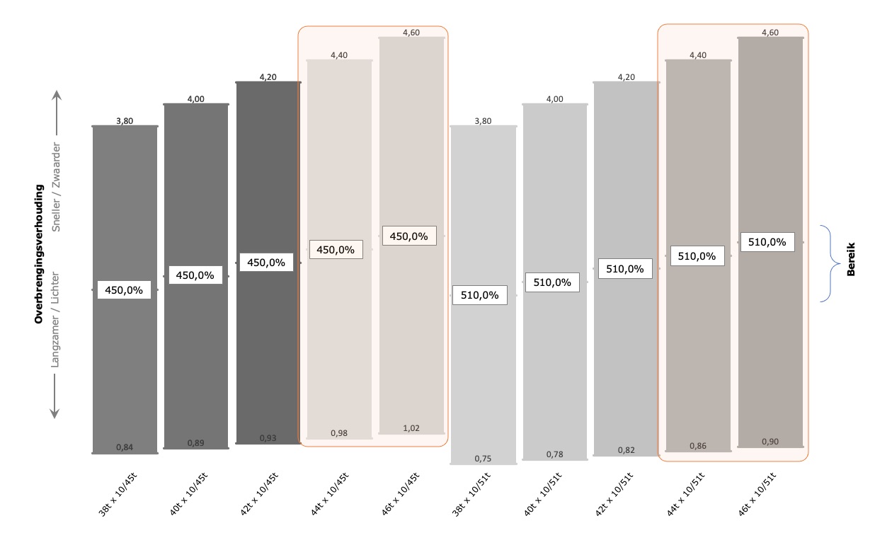 Rij je met een 1x-aandrijving, dus zonder voorderailleur, dan is de keuze van het kettingblad vooraan bepalend voor het volledige karakter van de aandrijflijn. Met een te klein kettingblad begrens je de topsnelheid, een te groot kettingblad maakt klimmen onnodig zwaar.