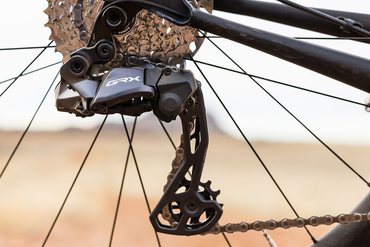 Met de toevoeging van Di2 aan GRX 2×12-speed, brengt Shimano talloze vernieuwingen ten opzichte van de 11-speed Di2-versie voor gravelbikes. Zo zijn er nieuwe rem-schakelgrepen én is de set-up semi-draadloos. De derailleurs zijn onderling verbonden met één batterij, maar de shifters sturen het geheel draadloos aan. De nieuwe derailleurs en grepen zijn een uitbreiding op de bestaande groepen en delen dan ook de overige 2×12-speed GRX-componenten zoals cranks**, cassettes en ketting.