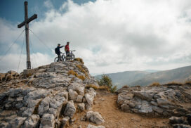 Er zijn genoeg redenen om het Saalachtal niet links te laten liggen als je door het Oostenrijkse Salzburgerland rijdt. De fraaie natuur, het kenmerkende almenlandschap en natuurlijk de zeer speciale route hoog boven Unken: de Wetterkreuz-trail. Deze trail dankt zijn naam een het markante startpunt; het grote kruis duizend hoogtemeters boven Unken. De tocht begint natuurlijk met een klim vanuit het dorp, over boswegen omhoog. Biken in Oostenrijk kan soms lastig zijn, want je mag niet zomaar iedere weg oprijden. Maar in het geval van deze trail hebben de boeren die het land in eigendom hebben allemaal belangeloos hun toestemming gegeven om deze bos- en almenwegen te gebruiken. Ga je voor de ultieme beleving, vertrek dat voor zonsopkomst, zodat je bij het Wetterkreuz bent op het moment dat de zon boven de bergen opkomt. Zo mooi, dat je op slag vergeet dat je een aanslag hebt gepleegd op je benen om hier te komen.